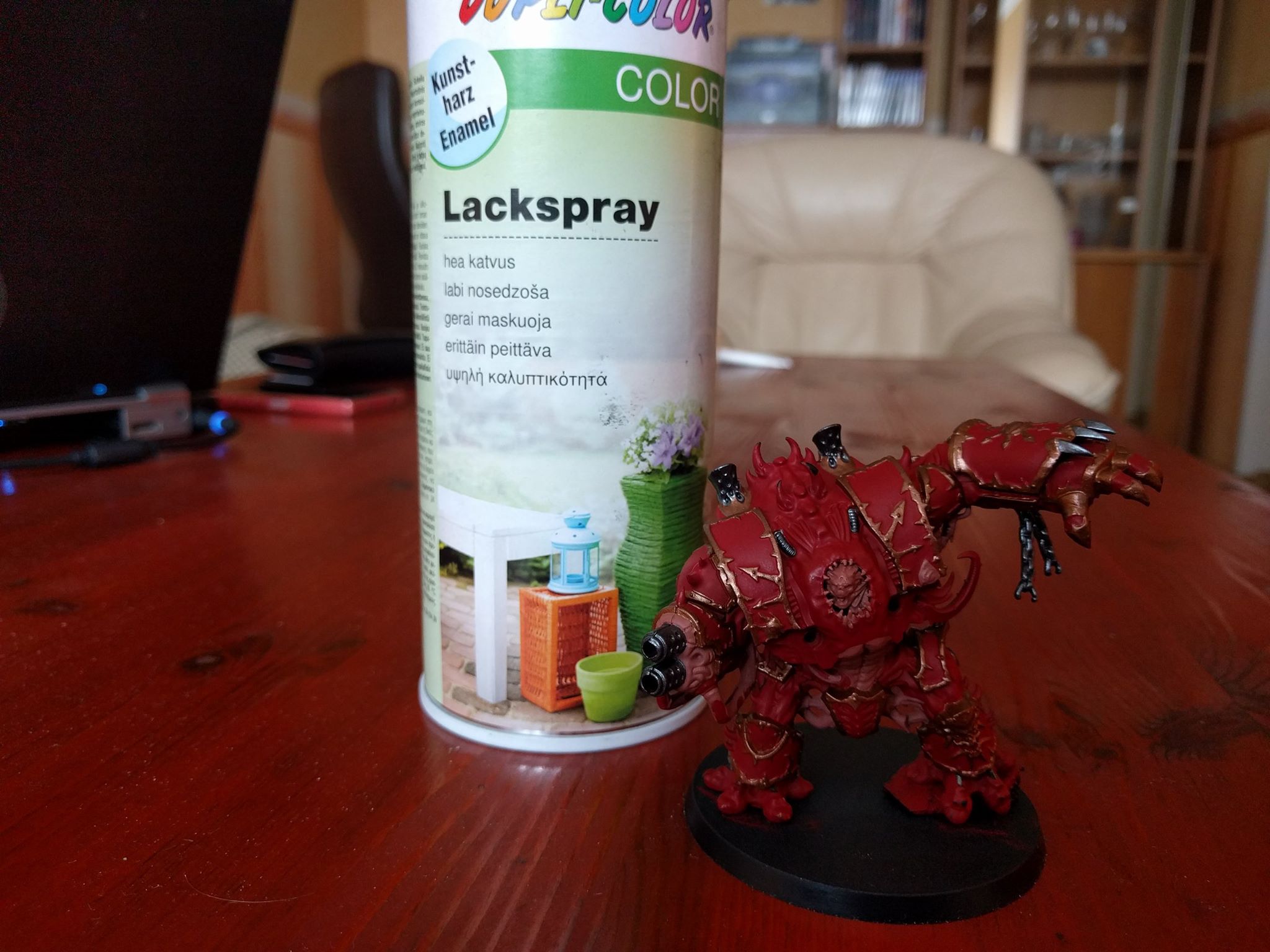 But as i started doing Helbrute, i noticed, that red color is chipping quite badly, so i checked the spray i bought and realised that i had gotten a random black spray for plastic.