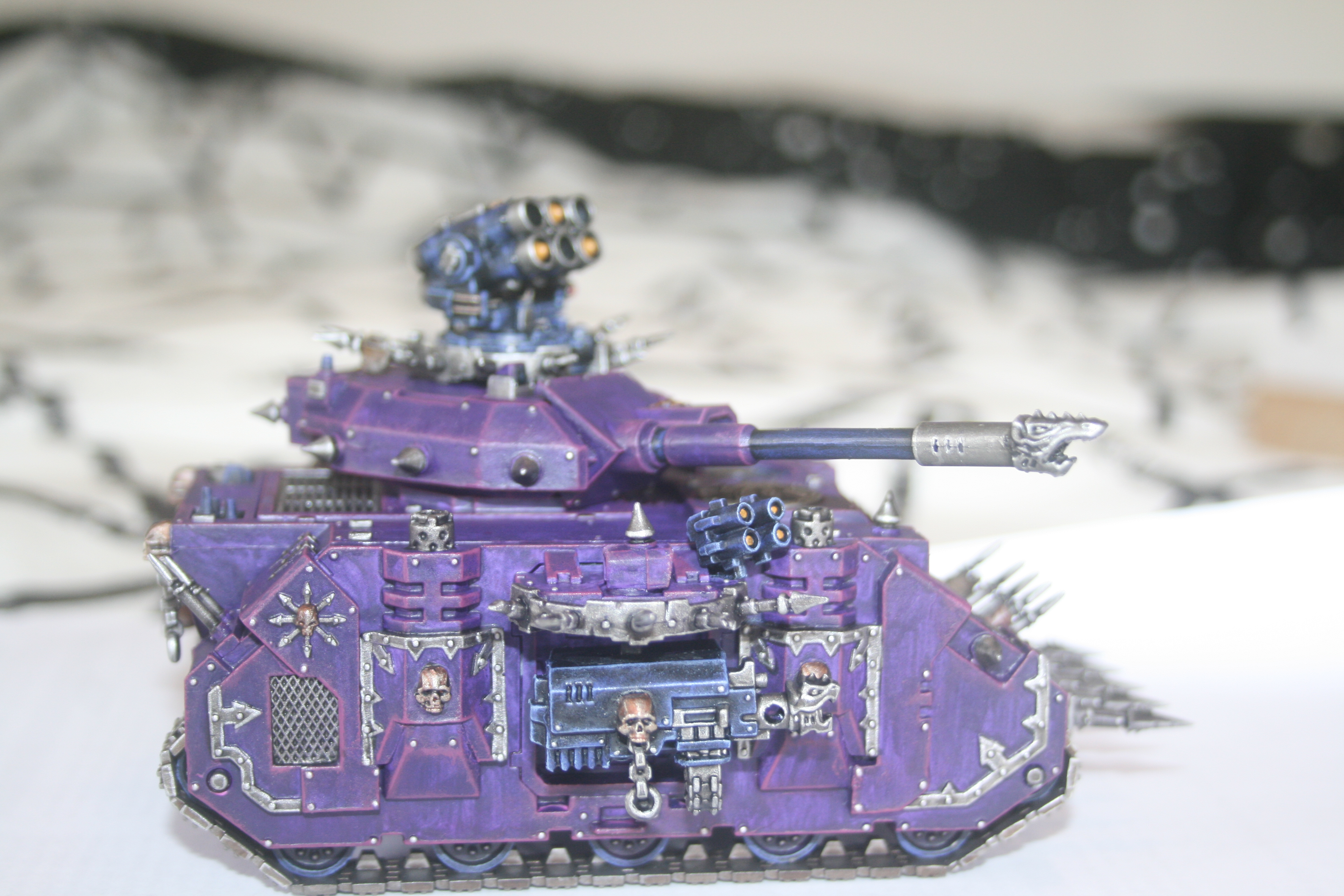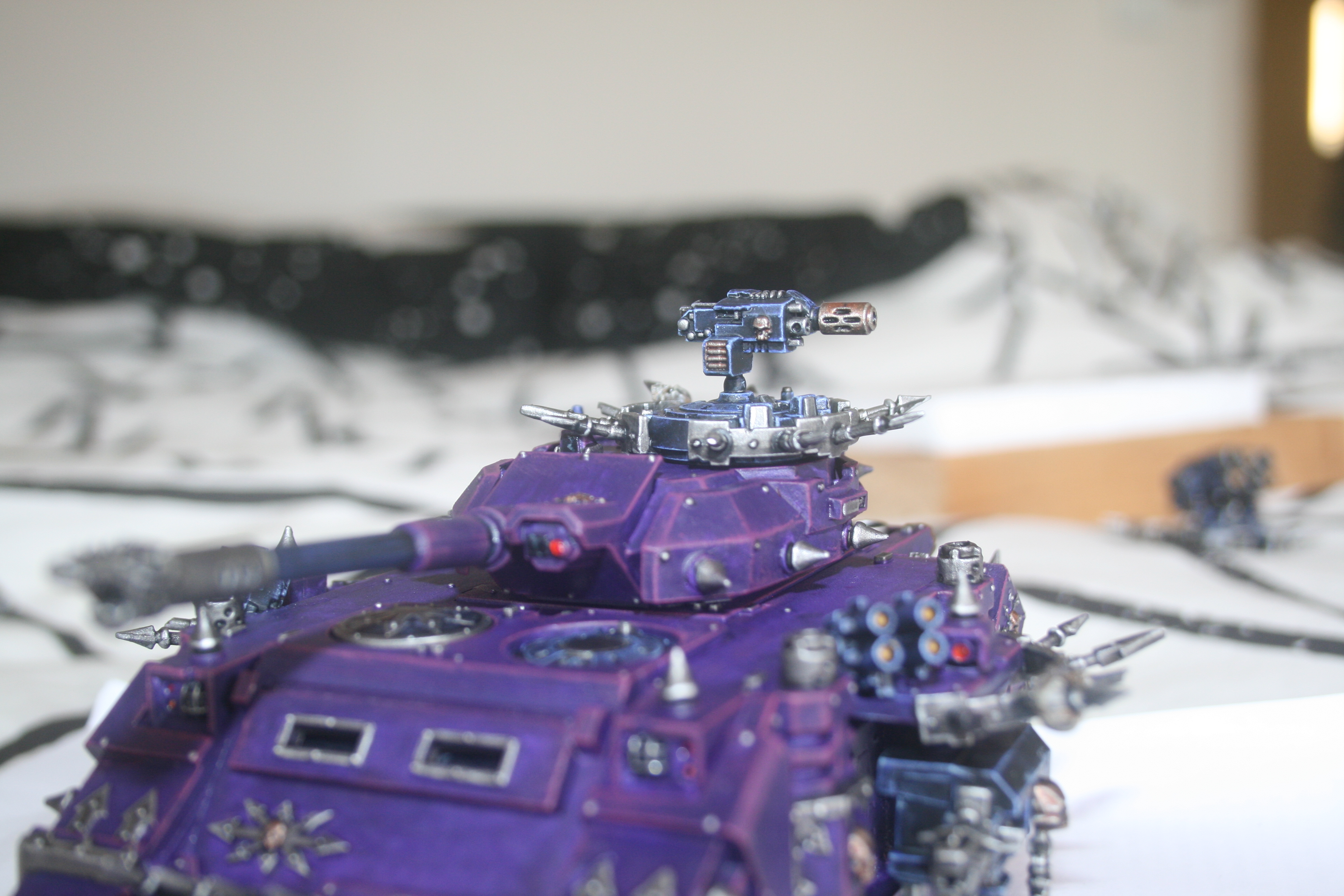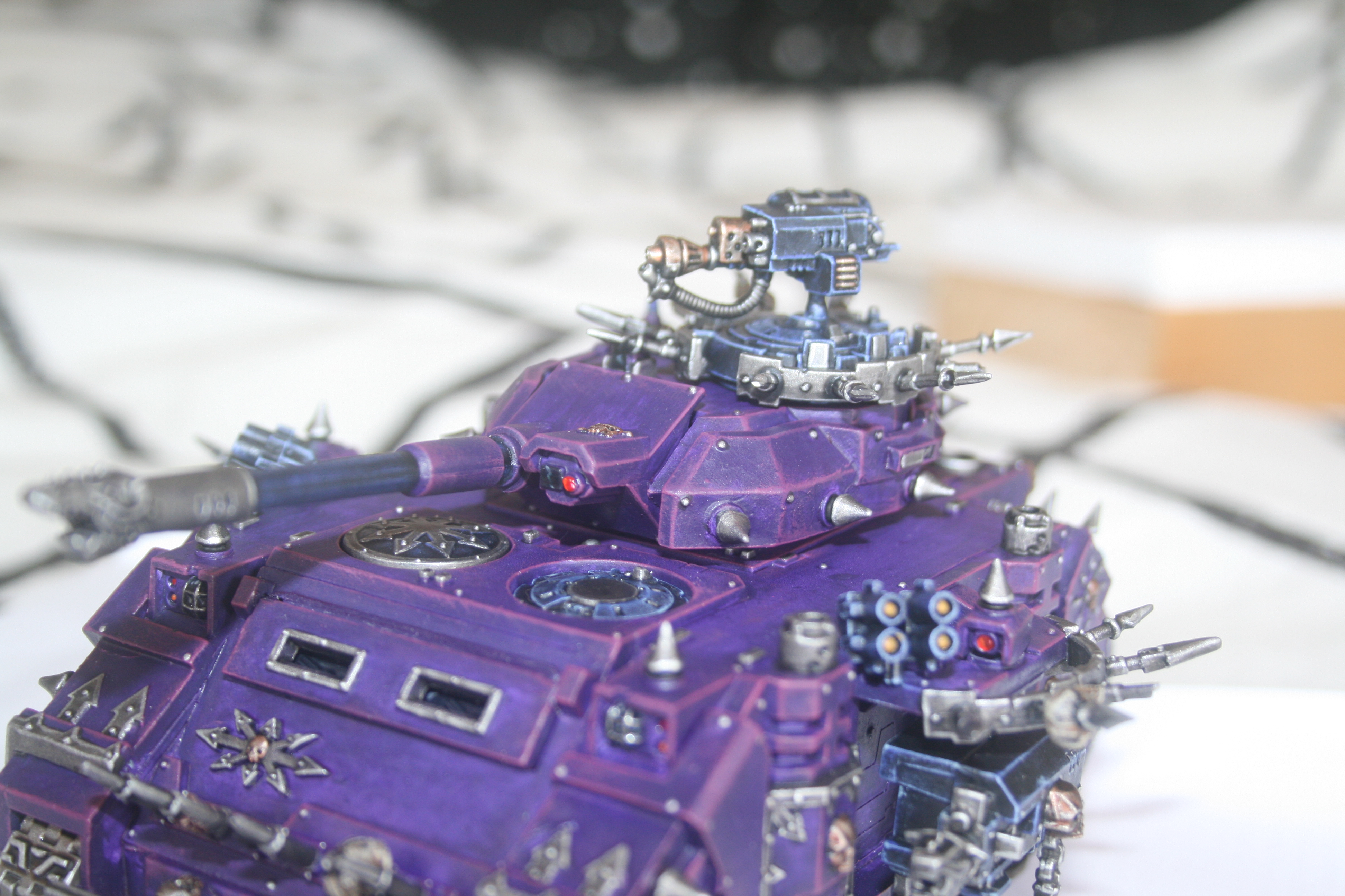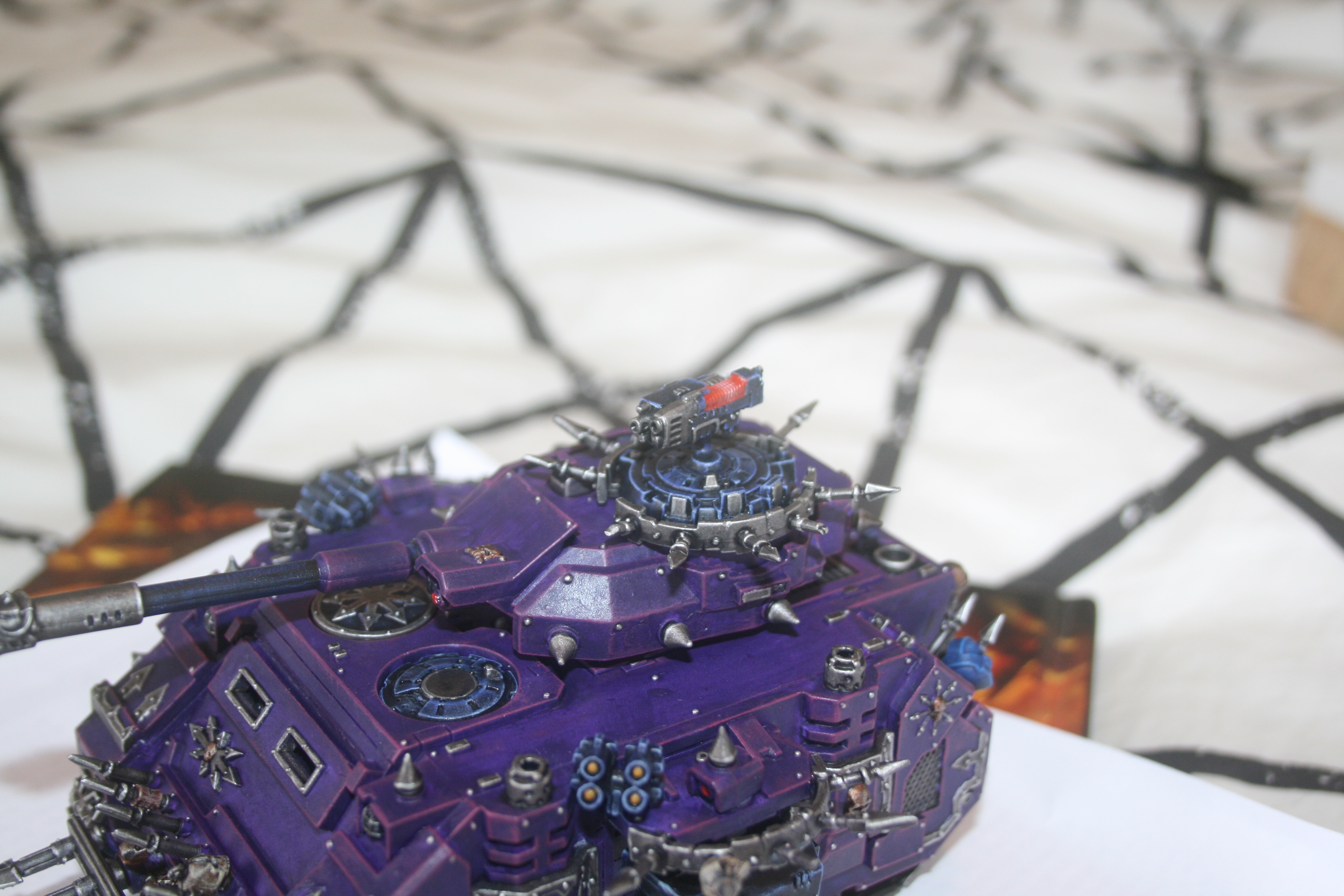 That is a great job on the tank. Did you use Subtle Discord'sThe Dark Works trim kit or templates? Edit: my mistake I didn't realize forgeword's chaos kit had the trim on it. Looks ace.