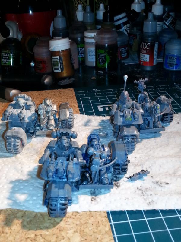 So that's all the progress I've made so far. I'm waiting on some paints to come in so I can prime these bad boys, specifically some primer from Army Painter. I want to glue these suckas to their bases since I have a game today at Jerry's... but I fully plan on airbrushing them.... so I'll have to week several weeks before I get my airbrush kit setup.