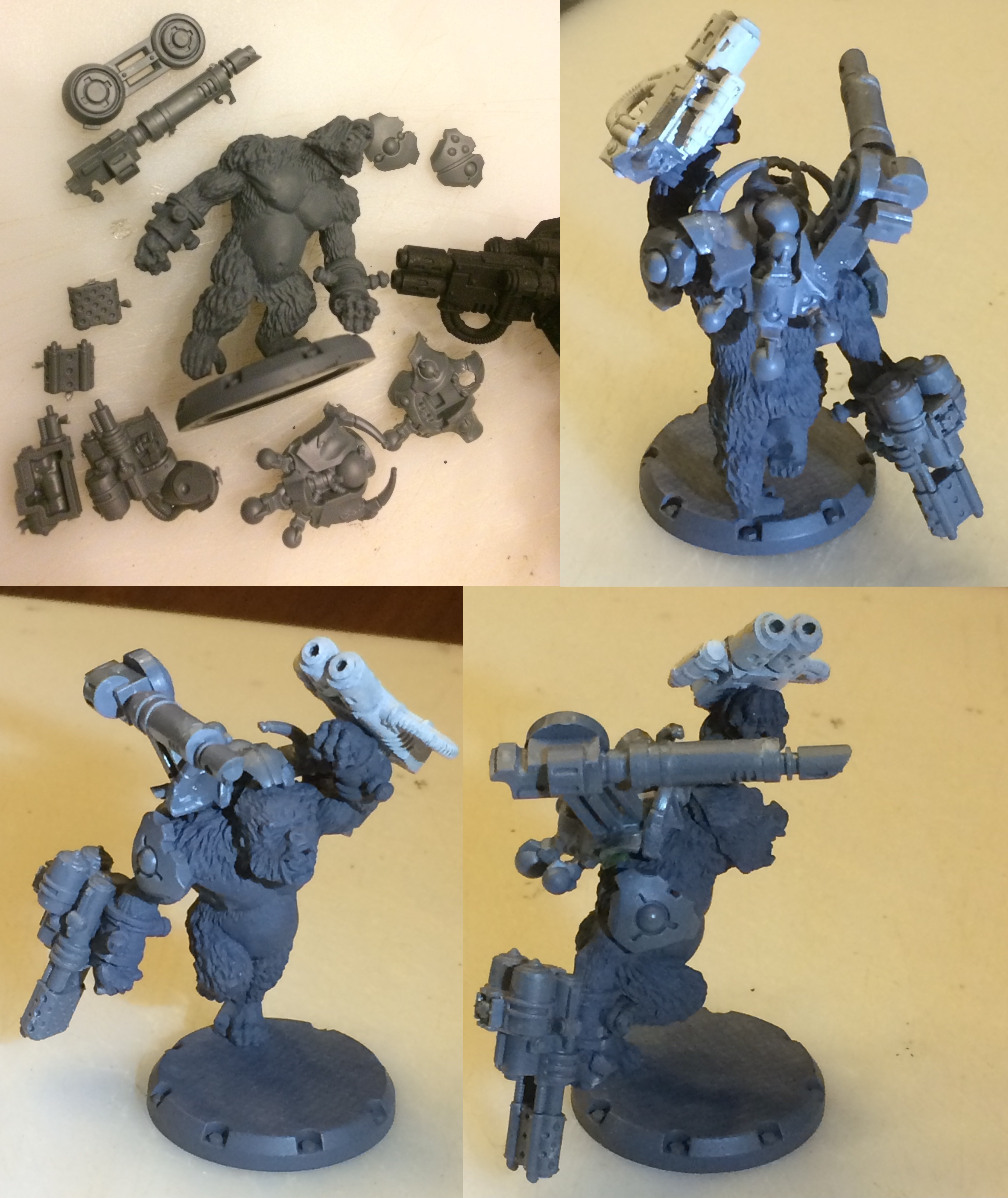 I don't really care for the GW Jokaero model. It's cute, but doesn't strike me as ready for the life in the 41st century. And to top it off, it's not WYSIWYG. The GW model has what? A magic finger and an oversized paw? Neither of those equal lascannon, heavy flamer, or multi-melta. So, the path to a conversion was started.