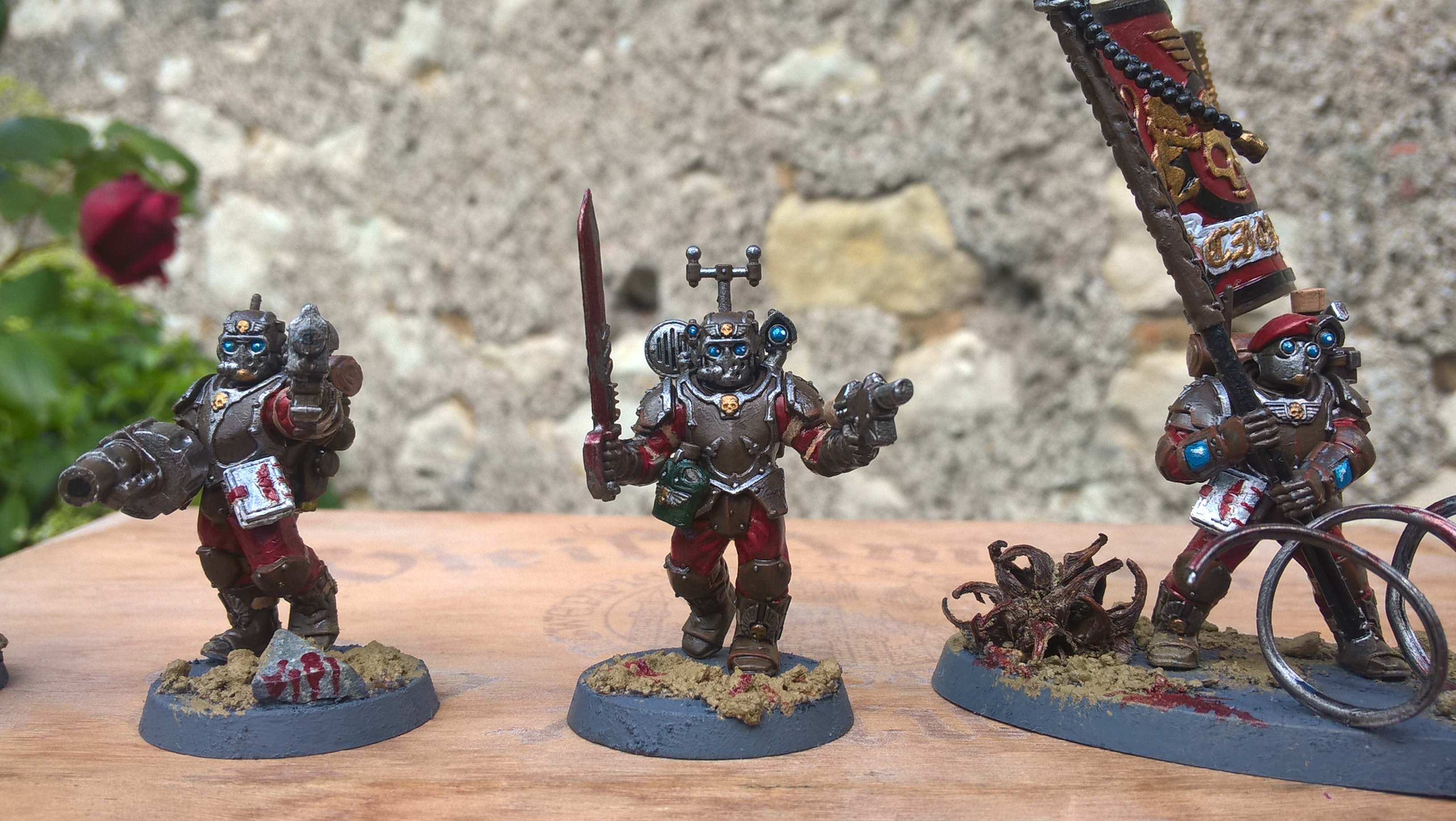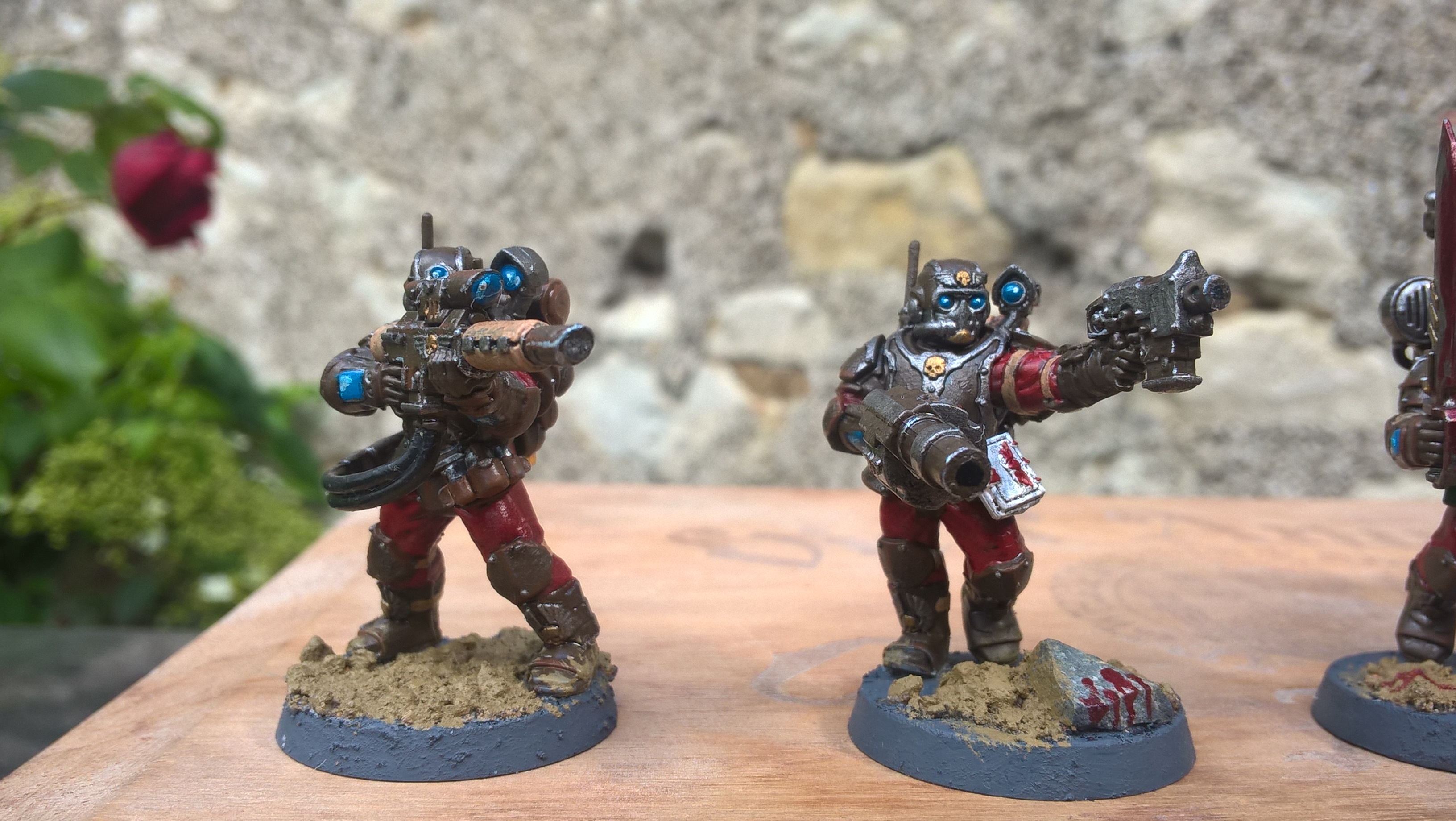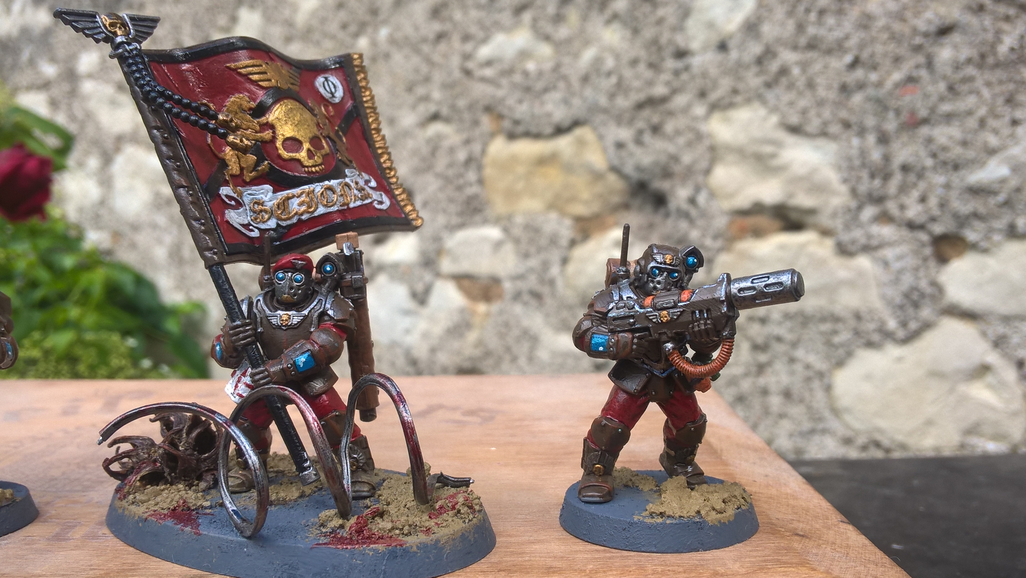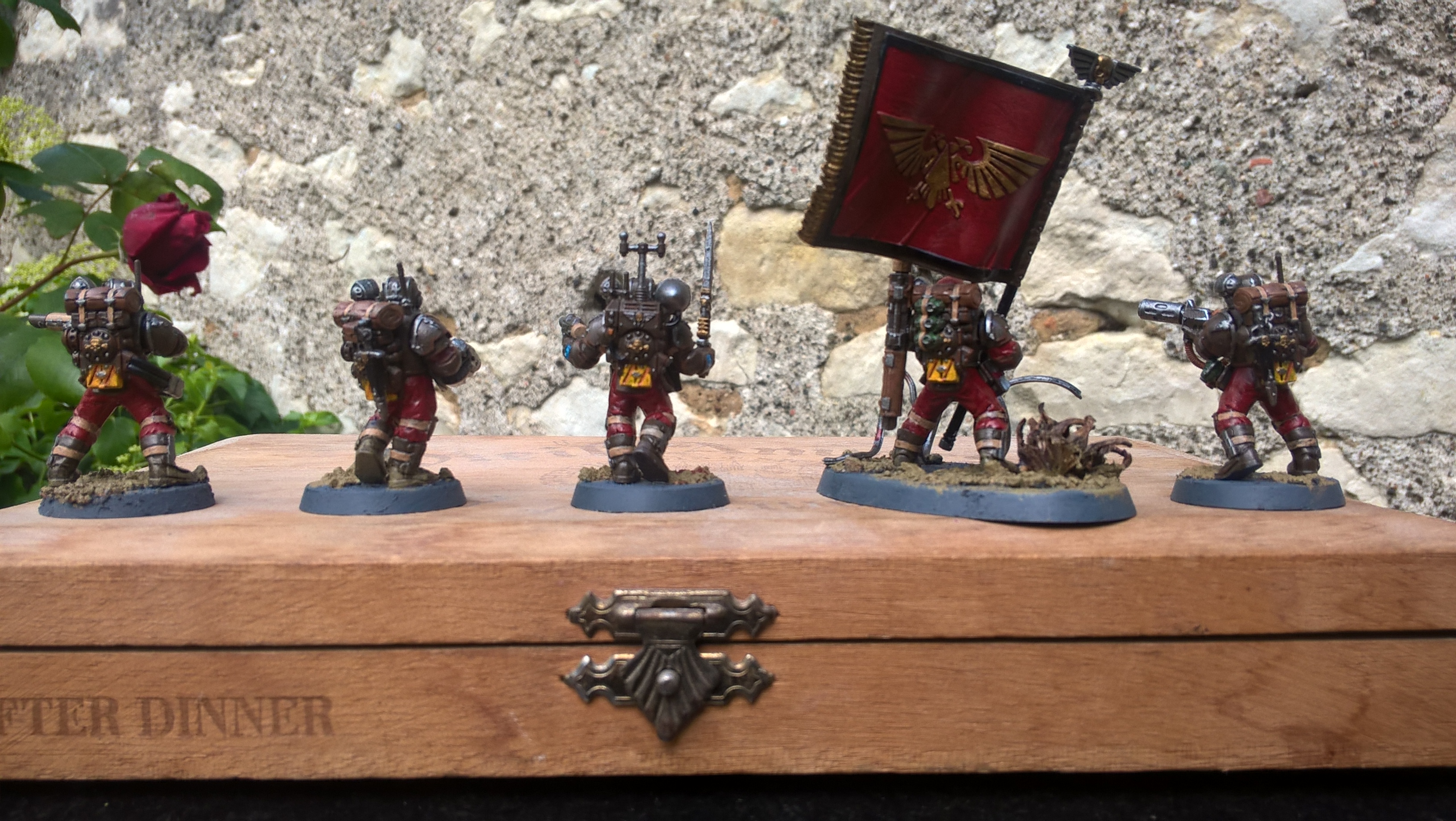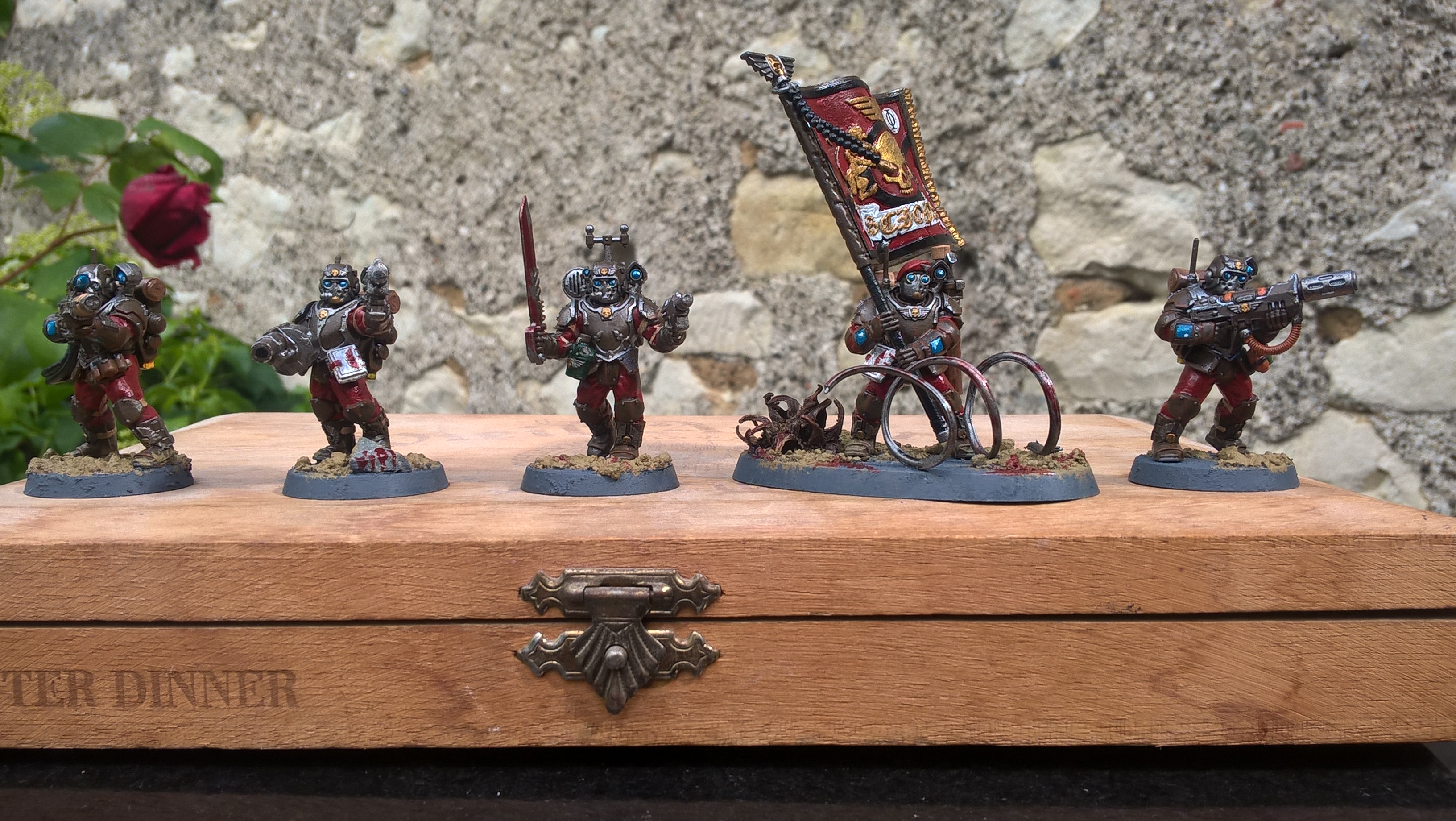 Hi guys , i'm here to introduce myself to you old veterans of the wargaming world as well as you young lads painting your first miniature in the back of your bedroom with a flashlight and an old dying paintbrush from your schoolgear . My name is Norton and i'm in the french military wich leaves me with little time to abide my pastime of painting miniatures . I don't play i haven't got the time but i really enjoy painting it's like a meditation to occupy my free time . I started being a young boy painting 1/72 scale soldiers from the first and second world wars with my father but he essentially did all the work when i played with it when finished eheheh , i'm now an adult and haven't painted in years i decided to purchase some Warhammer 40Ks being a huge science fiction fan and started to pull my hair on how to paint it with a cool look cause it's really different from what i used to do , adding the fact that i've never build a miniature before . My ranks contains 5 Tempestus Scions that i will add in pictures for you to see and give me needed advices on how to be better in the future , 20 skiitari rangers/vanguard that i just started painting (only four finished i can put pictures of if someone is interested) , 10 steel legions not painted yet and an Vostroyan firstborns squad with a commander squad still in transit . I hope some of my work will be liked since it's my first time painting warhammers , this scale and scifi miniatures and i look forward to tips and tricks for my later work . See ya lads