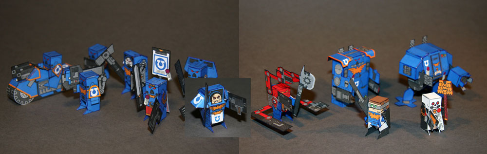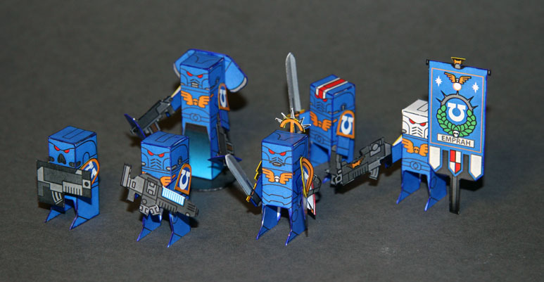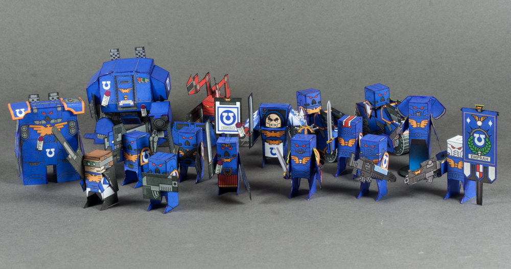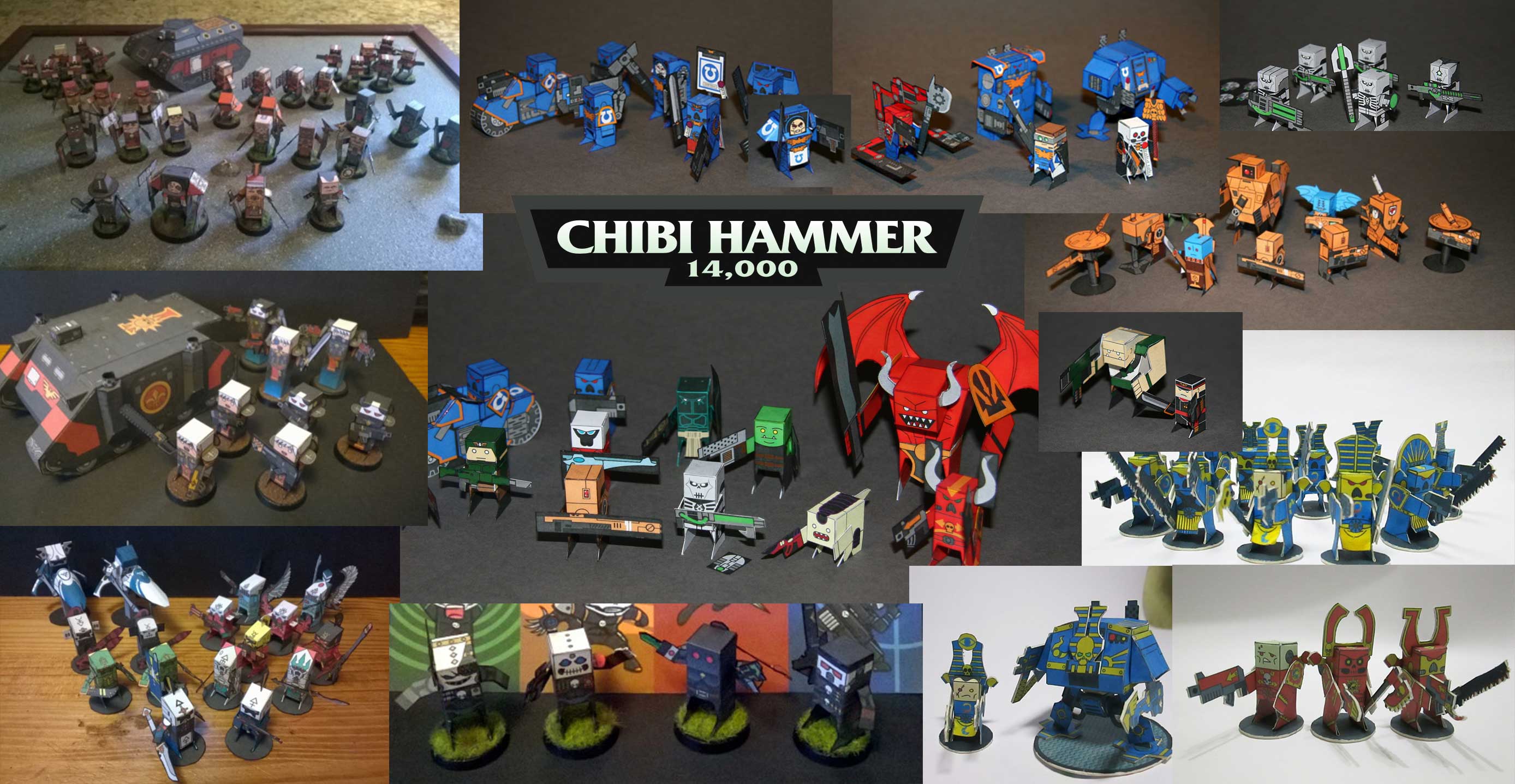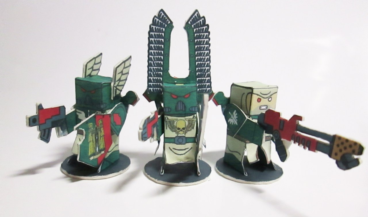 28mm scale grim dark chibi papercraft thingies. Made originally to amuse myself but I guess you could use them as paper proxies in games.