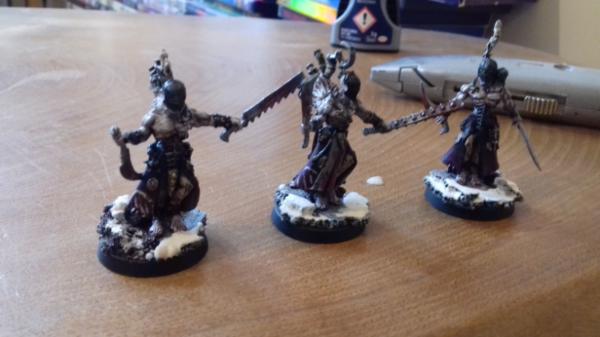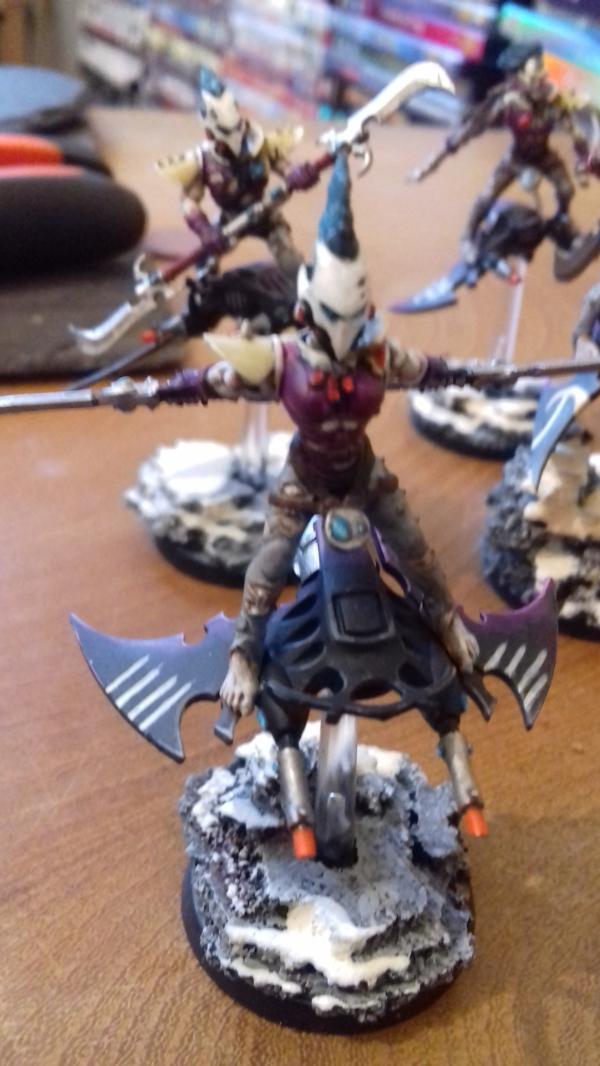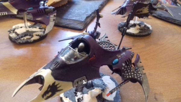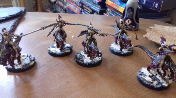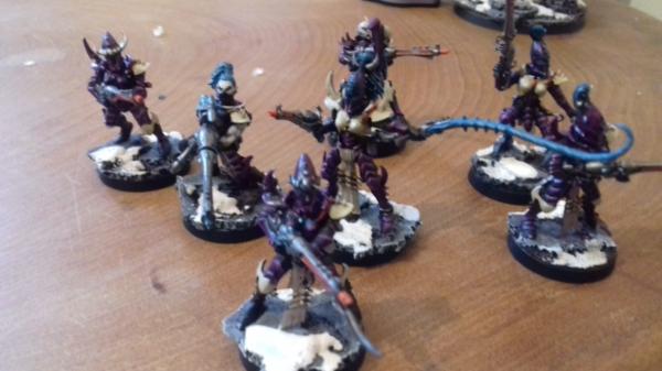 That's all the painted stuff. On the building blocks is Wyches mounted on wolves with rifles, more Scourges a few Wyches and kabalites 2 raiders and a ravager