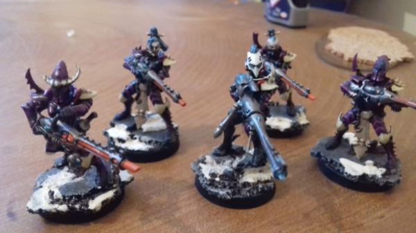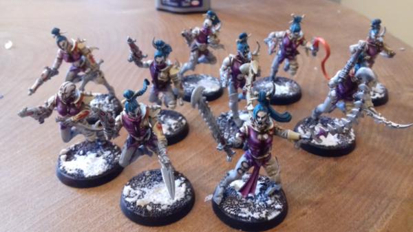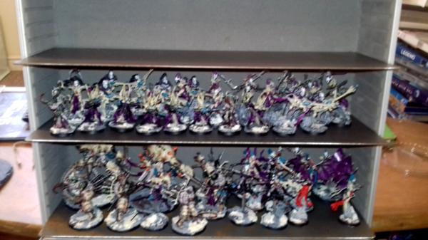 I had an idea a few years ago for a dark eldar army with a dark purple and cream colour palate. The project evolved from this to a large dark eldar/eldar force and now with the new joint faction it works there pretty well too. I'm currently magnetizing the whole force to fit in here