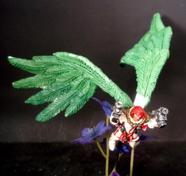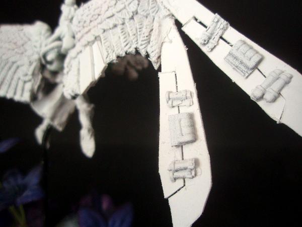 Hey all! Yes, been a long time, but 7th edition really slowed my group down. We are a bit excited about 8th, so I found some energy. As always, I turned to my Sister's of Battle, my favorite army and heavily converted. Anyway...here's a few more Seraphim conversions. First up is a new set of wing sculpts. I used warhawk wings originaly (sheesh, these must have been converted a decade or more ago...) and think they are too thick. So here is a