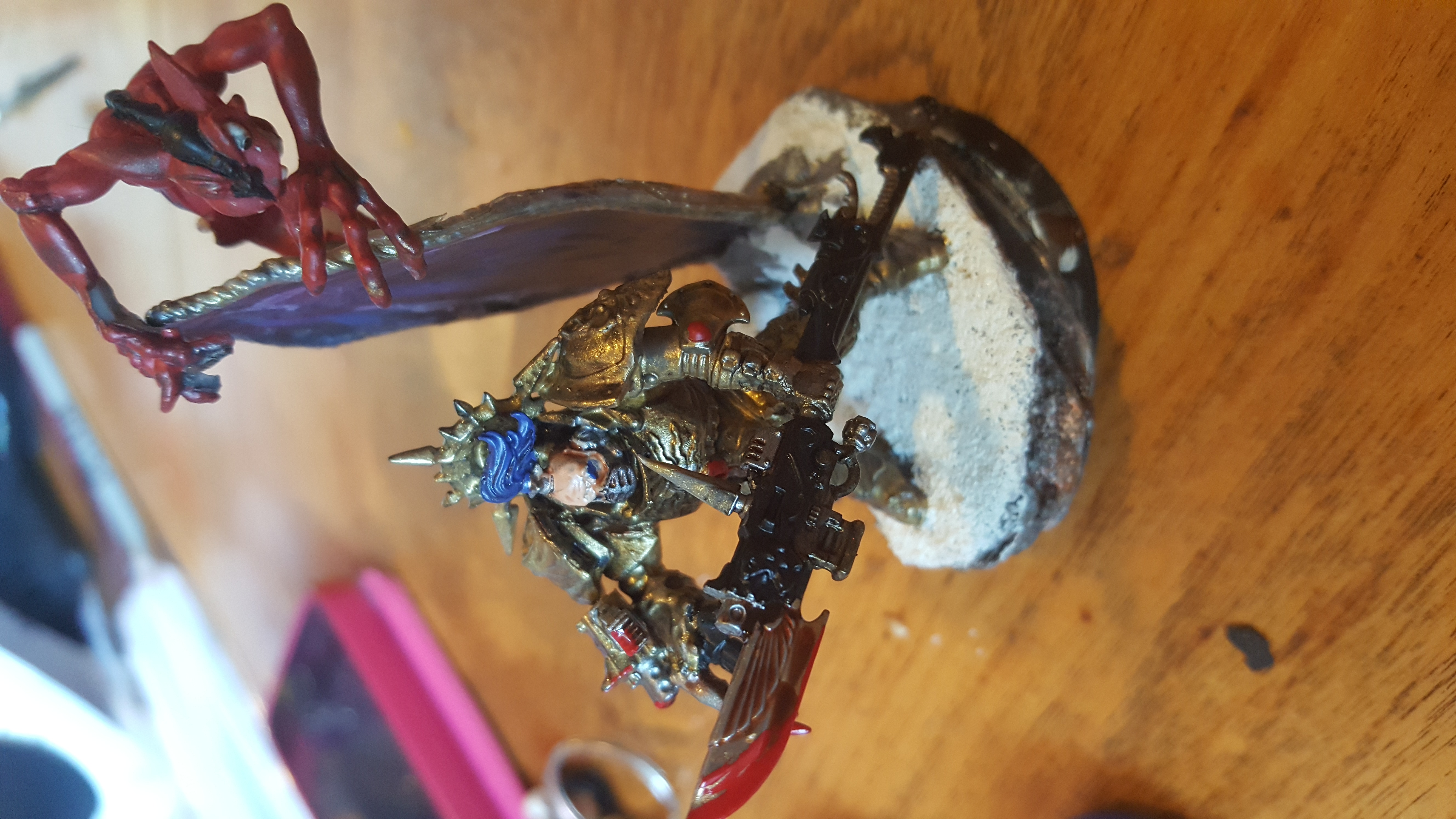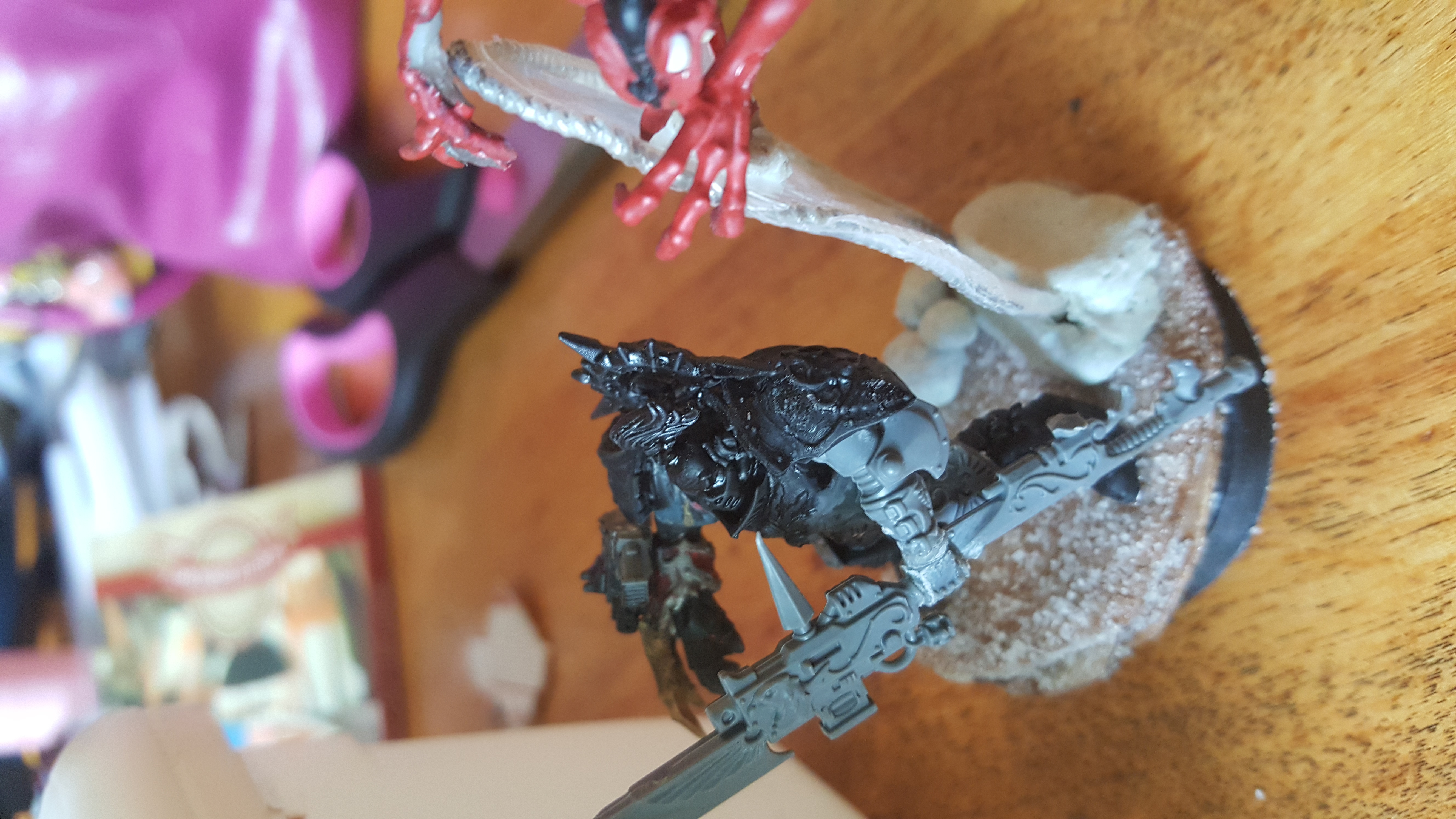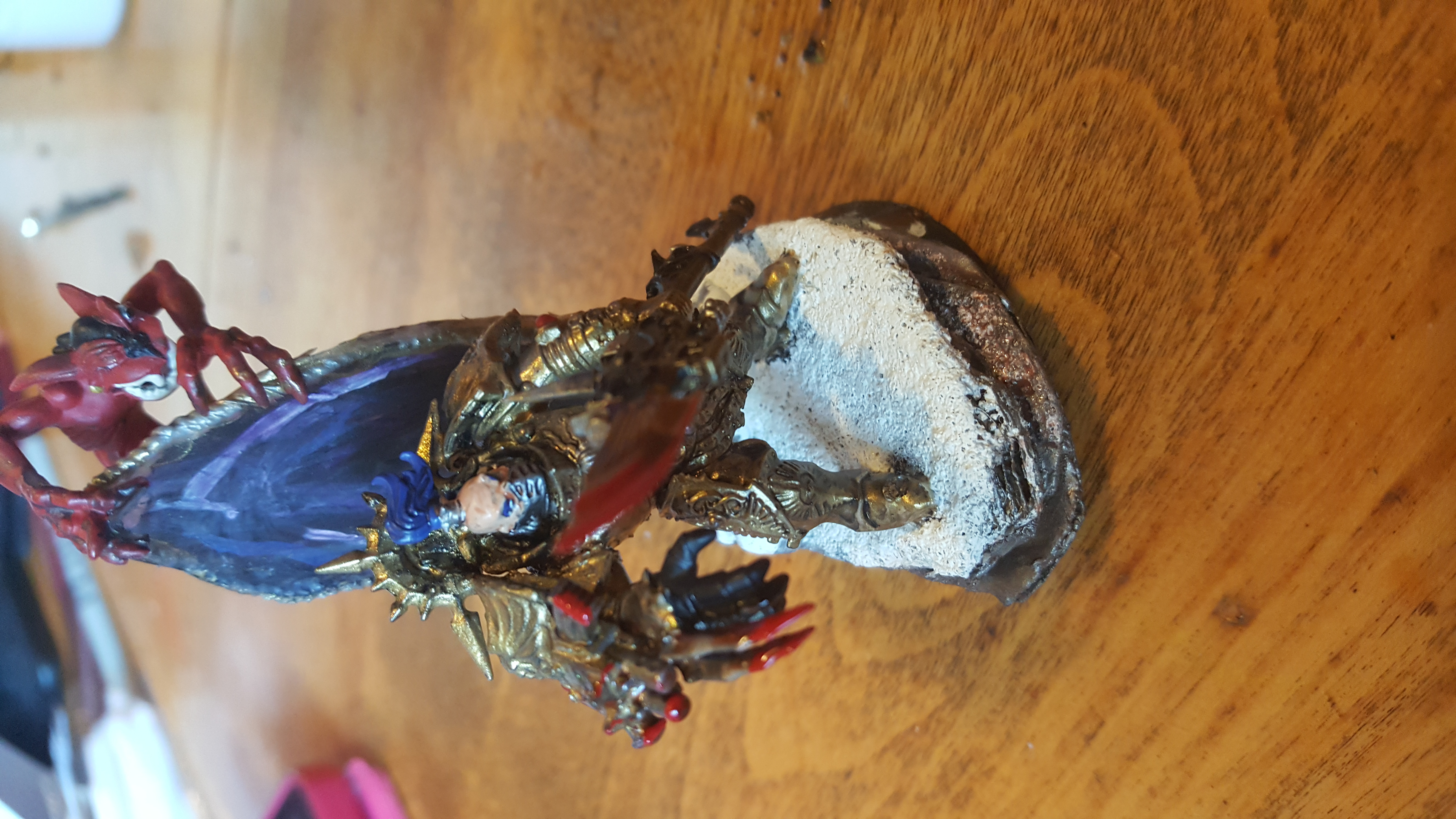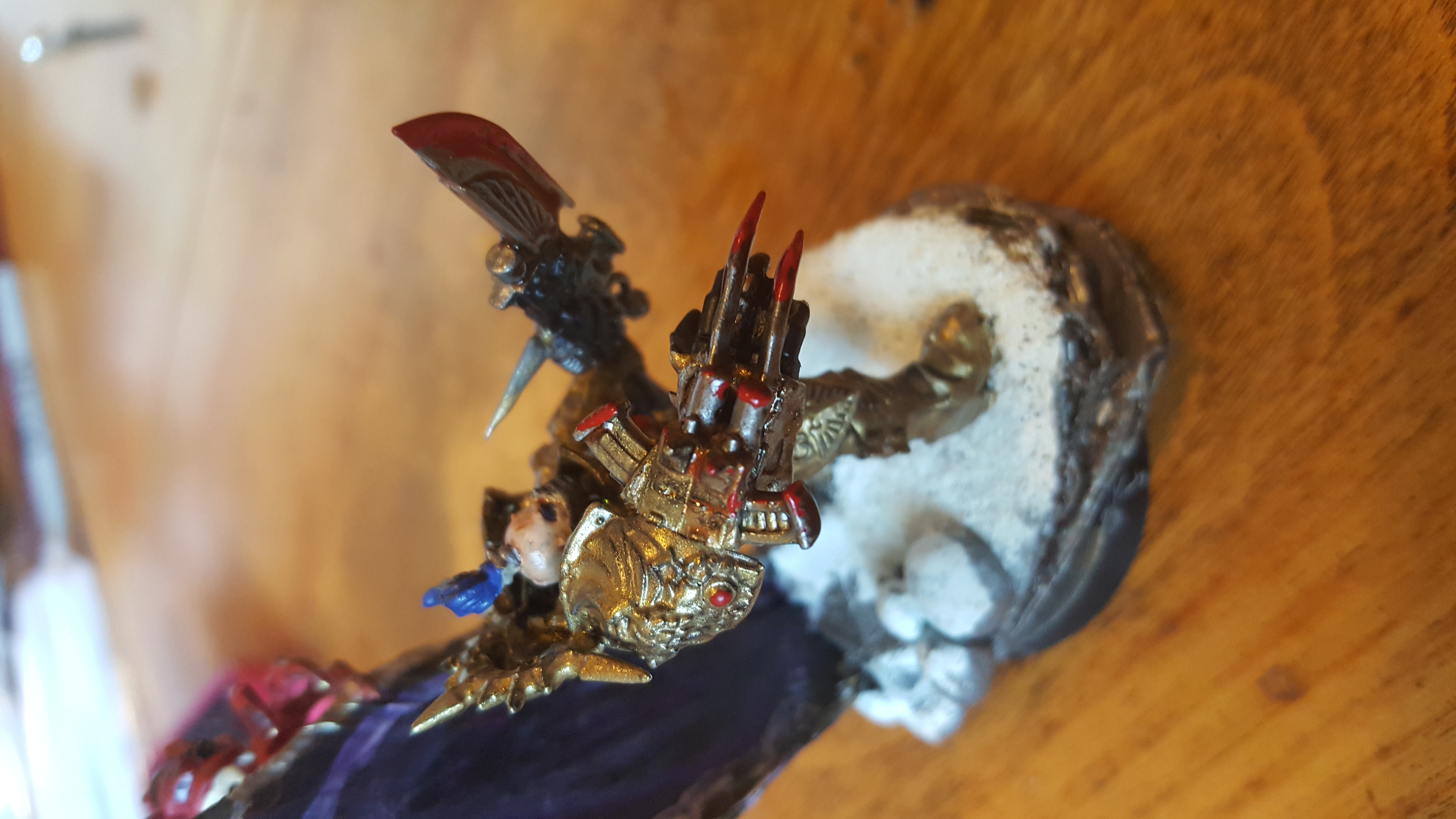Accually im incorperating the custodians armor in to his lore and he will have the aquillas tarnished to show his fallen status. I have started to base this model proper to show him as a leader and to make him seem much more grand next to my other models.