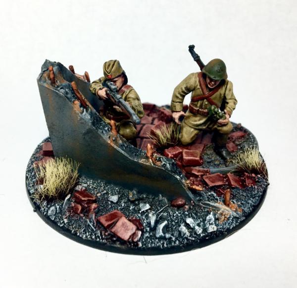 Hello, just thought I'd drop some of my Soviets off here to get some feedback. My army is the 7th Guards (previously the 64th Army) and is heavily influenced by an urban/cityfight theme (the 7th fought in Stalingrad and later Berlin). I was thinking about adding a T-28, 2xT26's, an M3 Scout car, a Cavalry and NKVD squad and two heavy tanks before I start on my next army (either DeathGuard or IJA, can't decide). Anyway, let me know what you think and/or what you think I might need in my list.