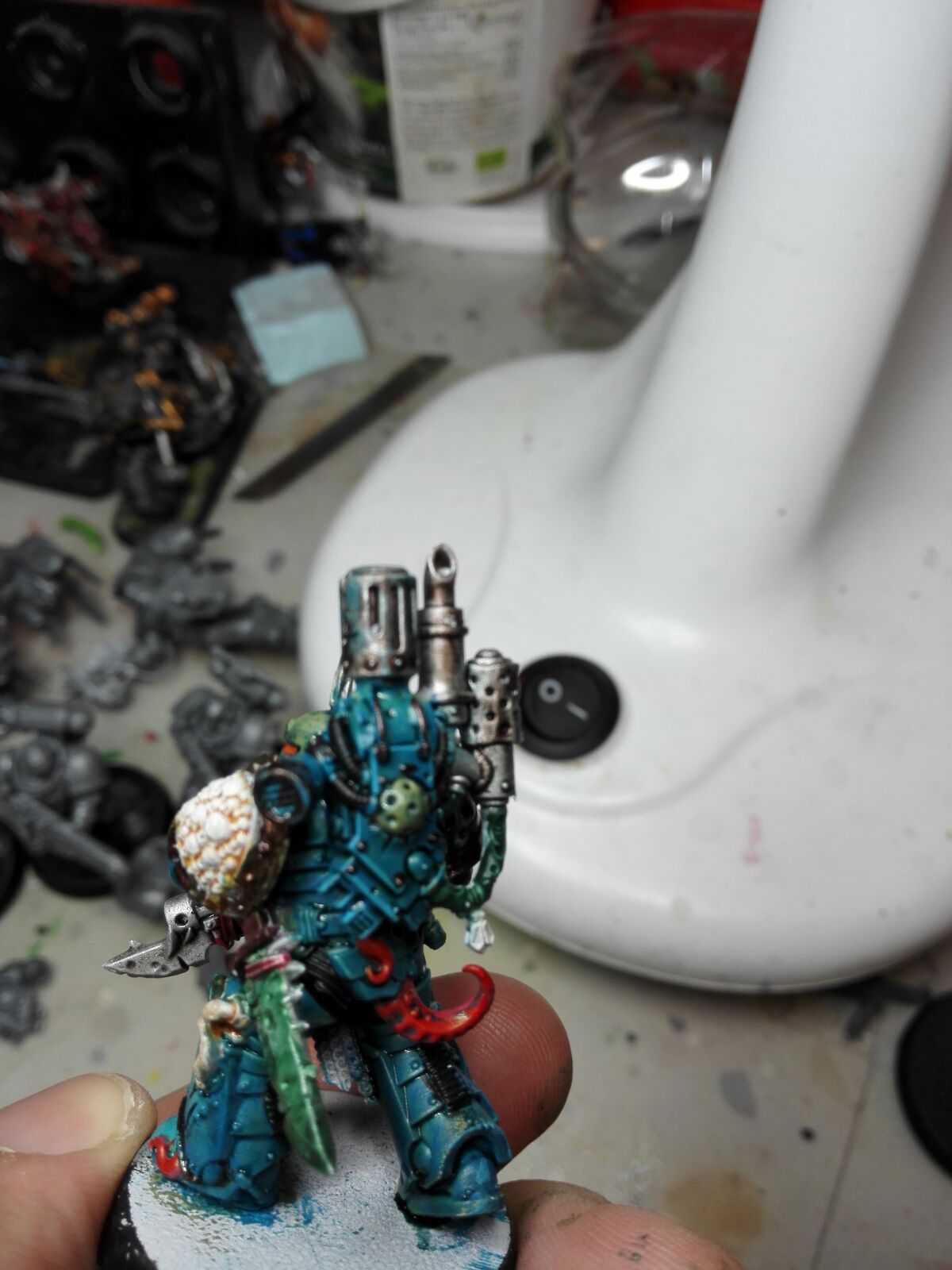 Thanks ,I ended up with the blueish colour because i plan to make this the personal warband of ahriman so it's dedication to ahriman rather than tzeentch and i kinda feel that blue agrees with nurgles decomposing.