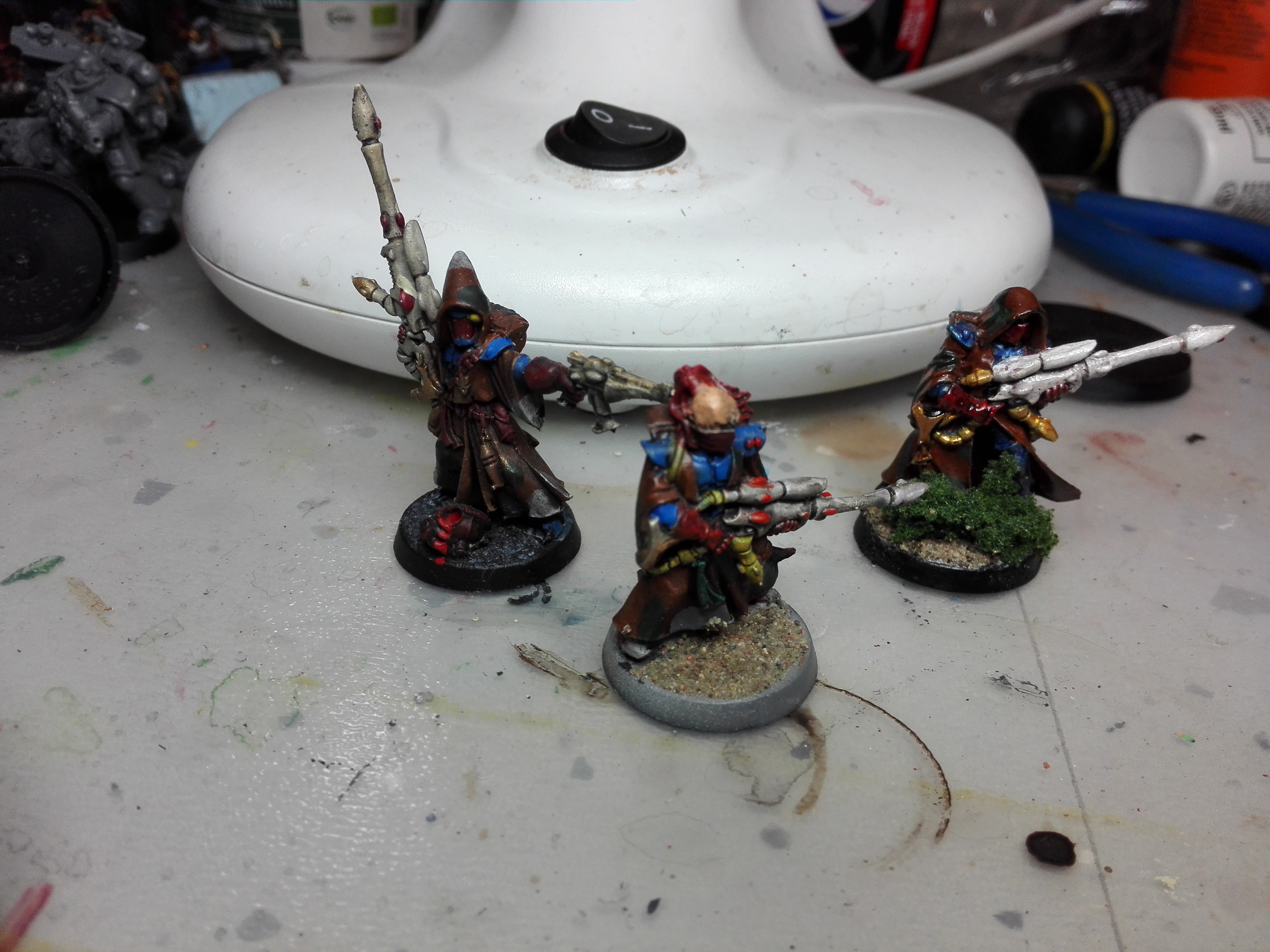 Here are the eldar (aeldari)  rangers/pathfinders the one with the hood and the bandana is coated with varnish mith coat all of them because metal