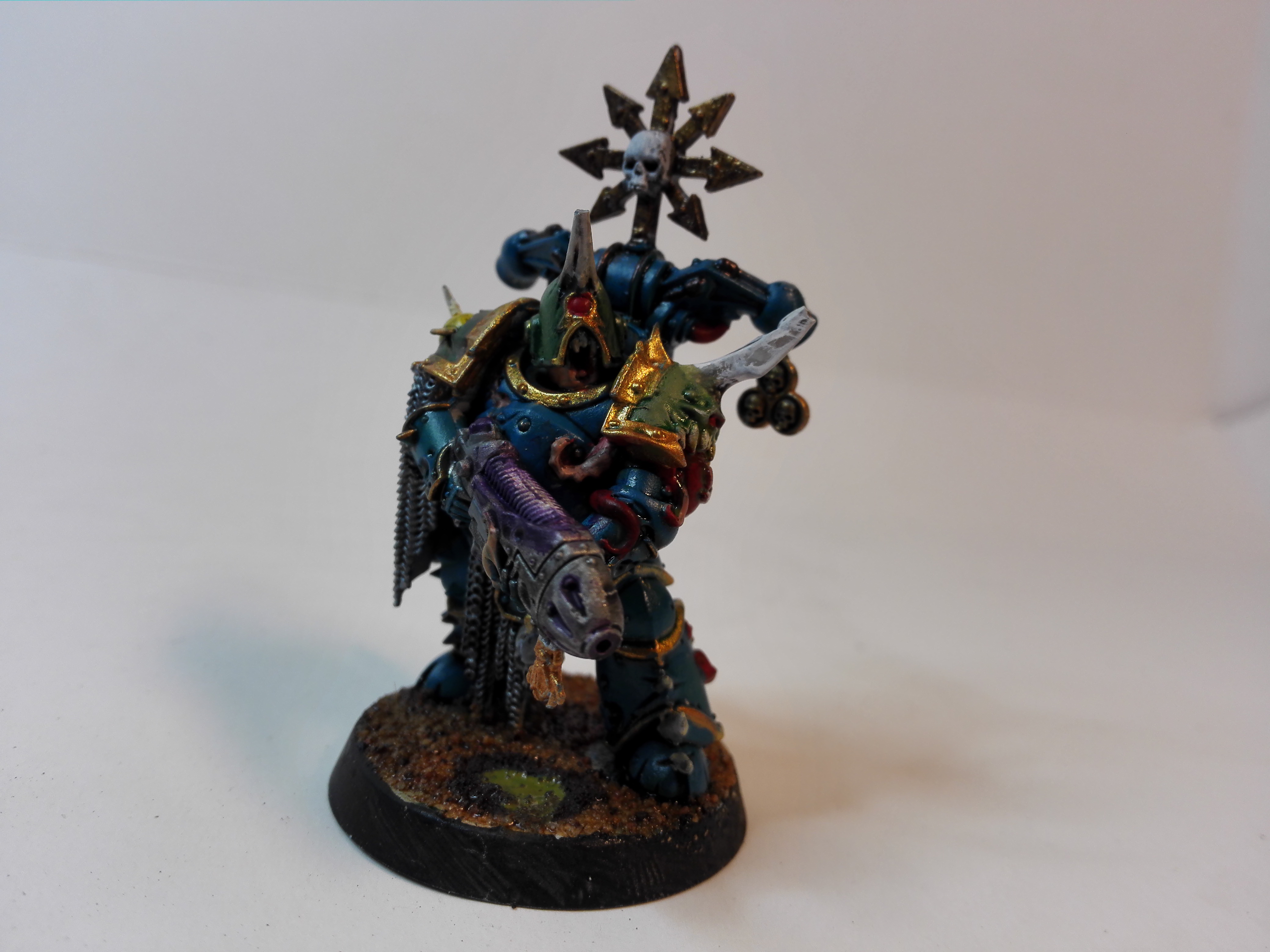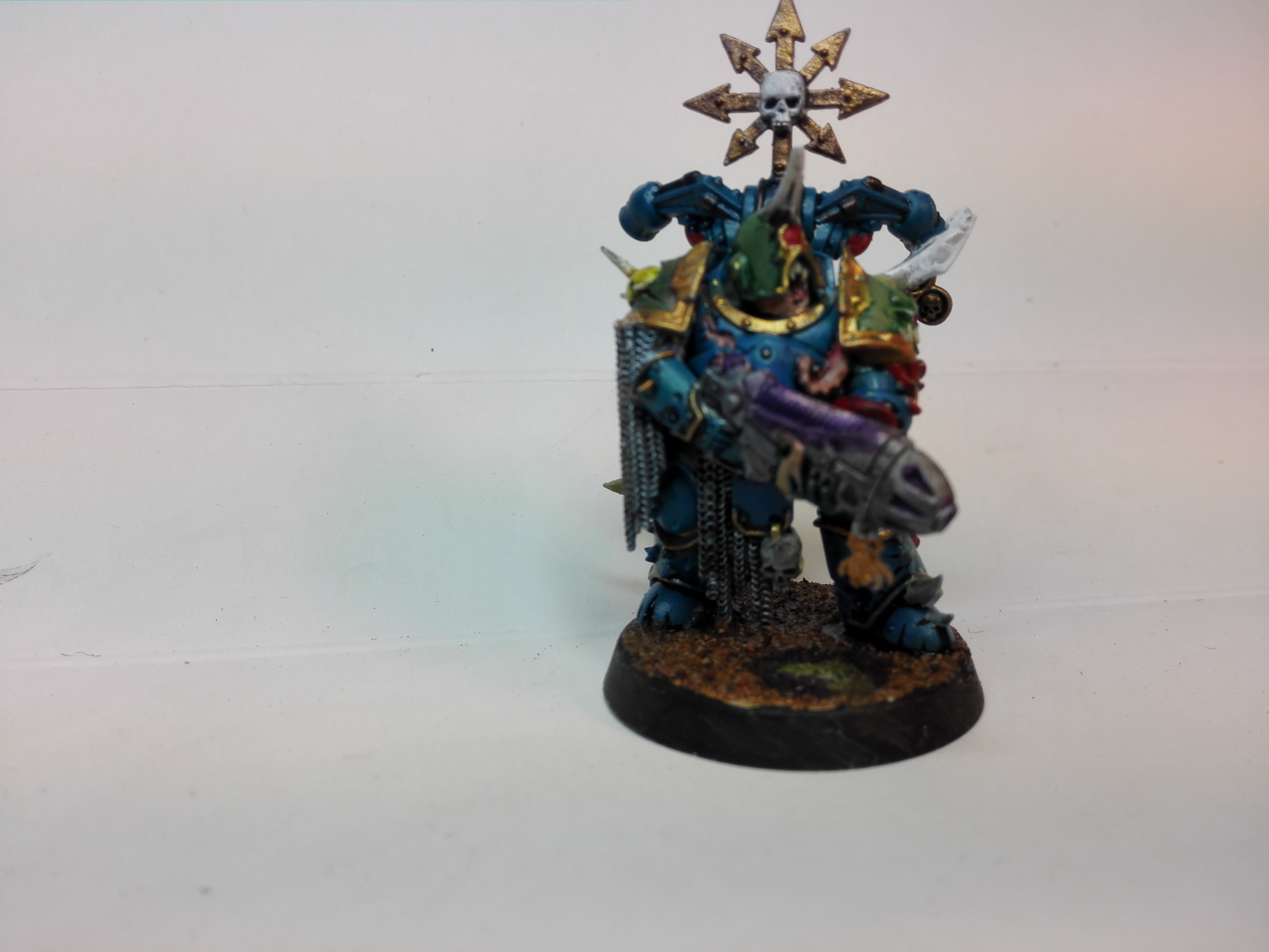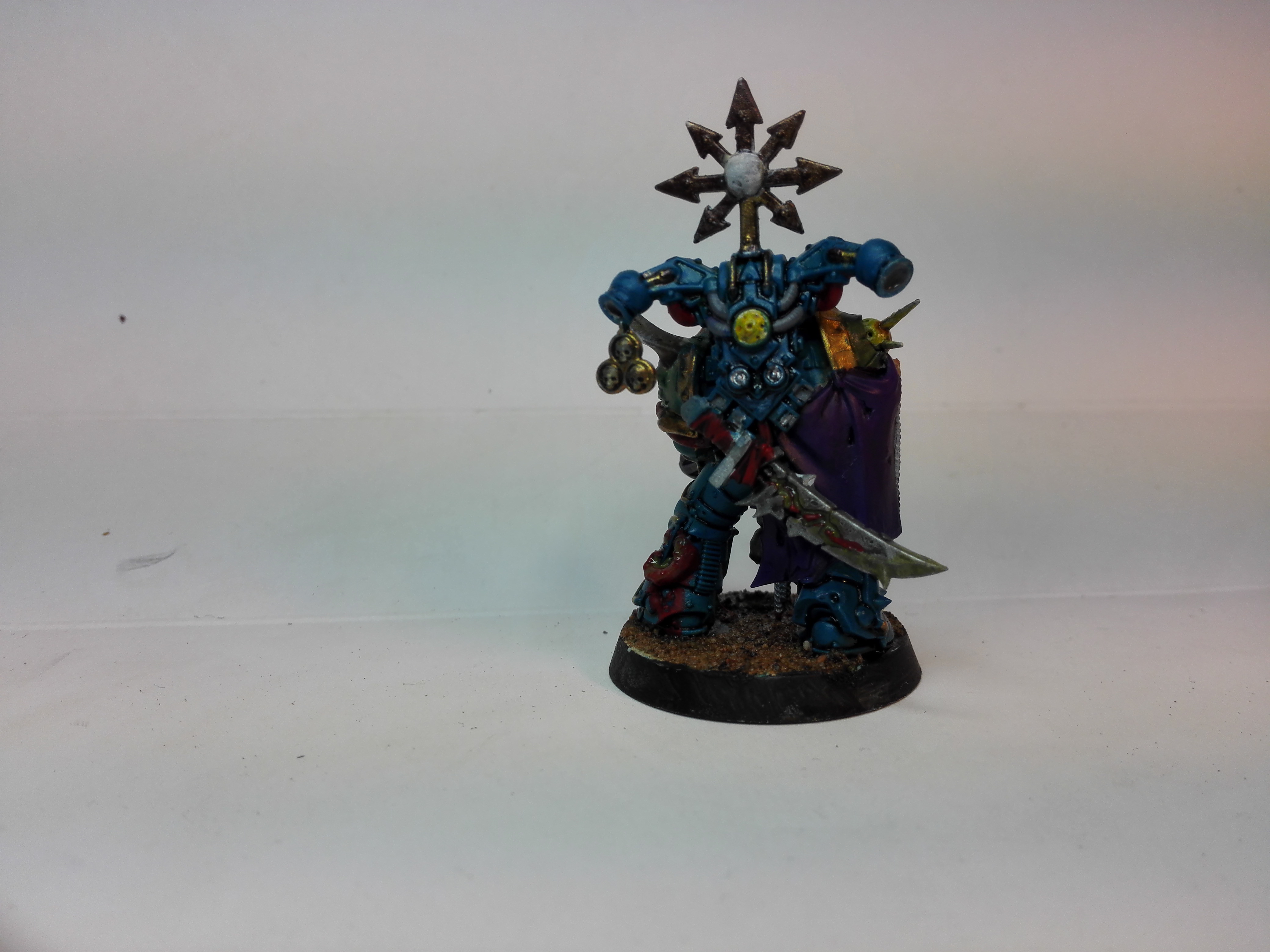 Mirou wrote:Here is my first chaos miniatyre it was a really big change for my tyranids and eldar but im kinda happy about it. This is a tester model for the colourscheme and all feedback from chaos veterans and from everybody else ofc is welcome.