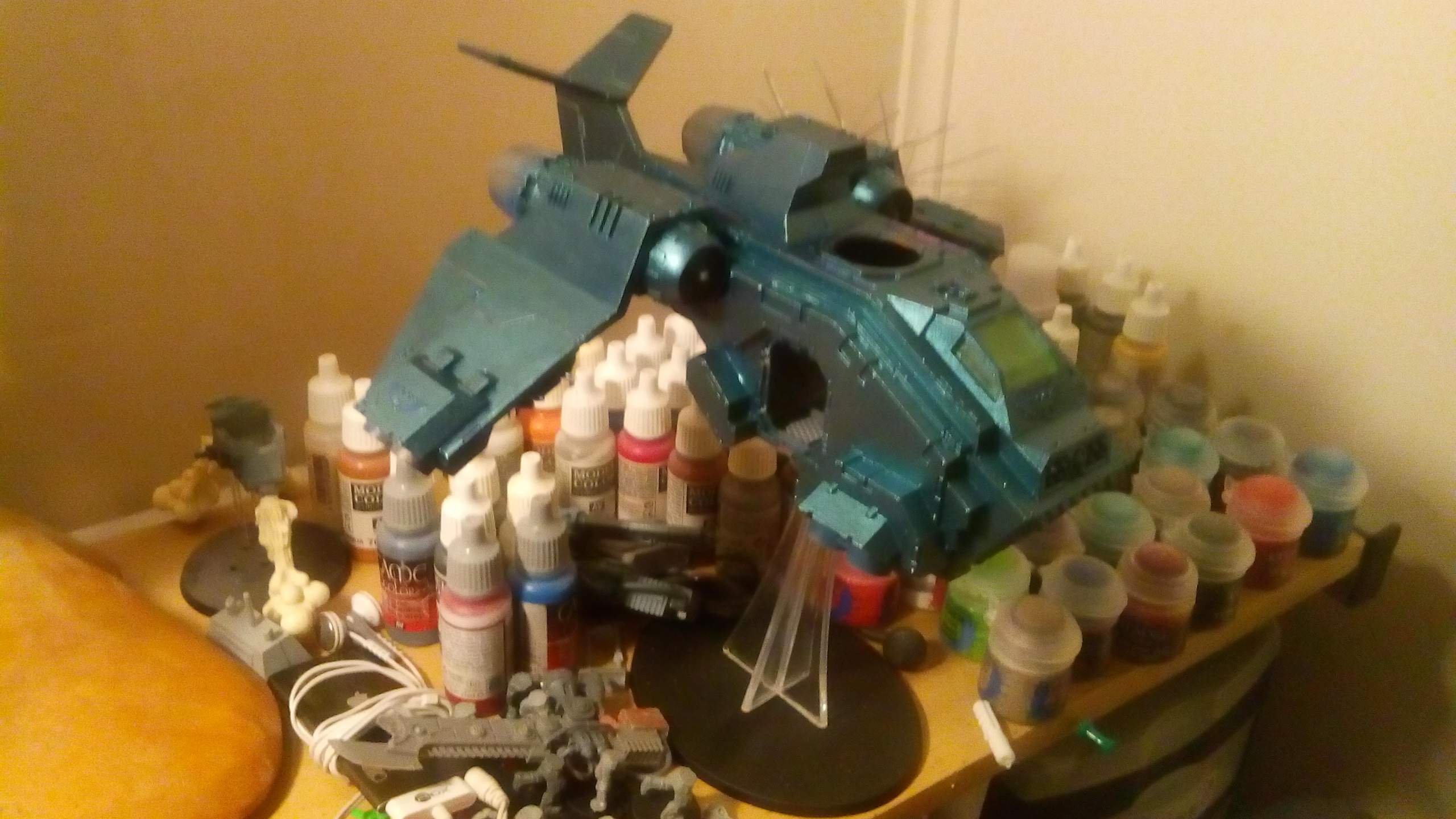 The stormraven got a basecoat of VMC Prussian Blue for an on-colour basecoat.