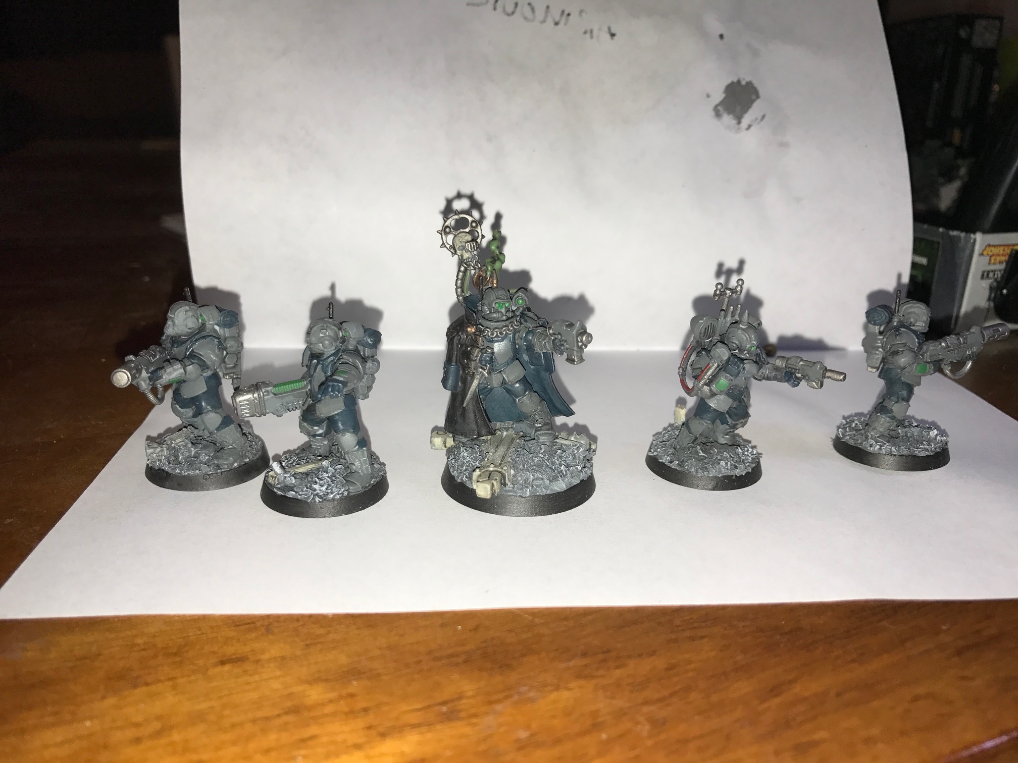 Inquisition-based colors (black cloth, red armor) looks pretty mean. Red is always a bit tricky to highlight, but if you're going the quick and dirty road and don't bother with edge highlighting, you might get away with it.