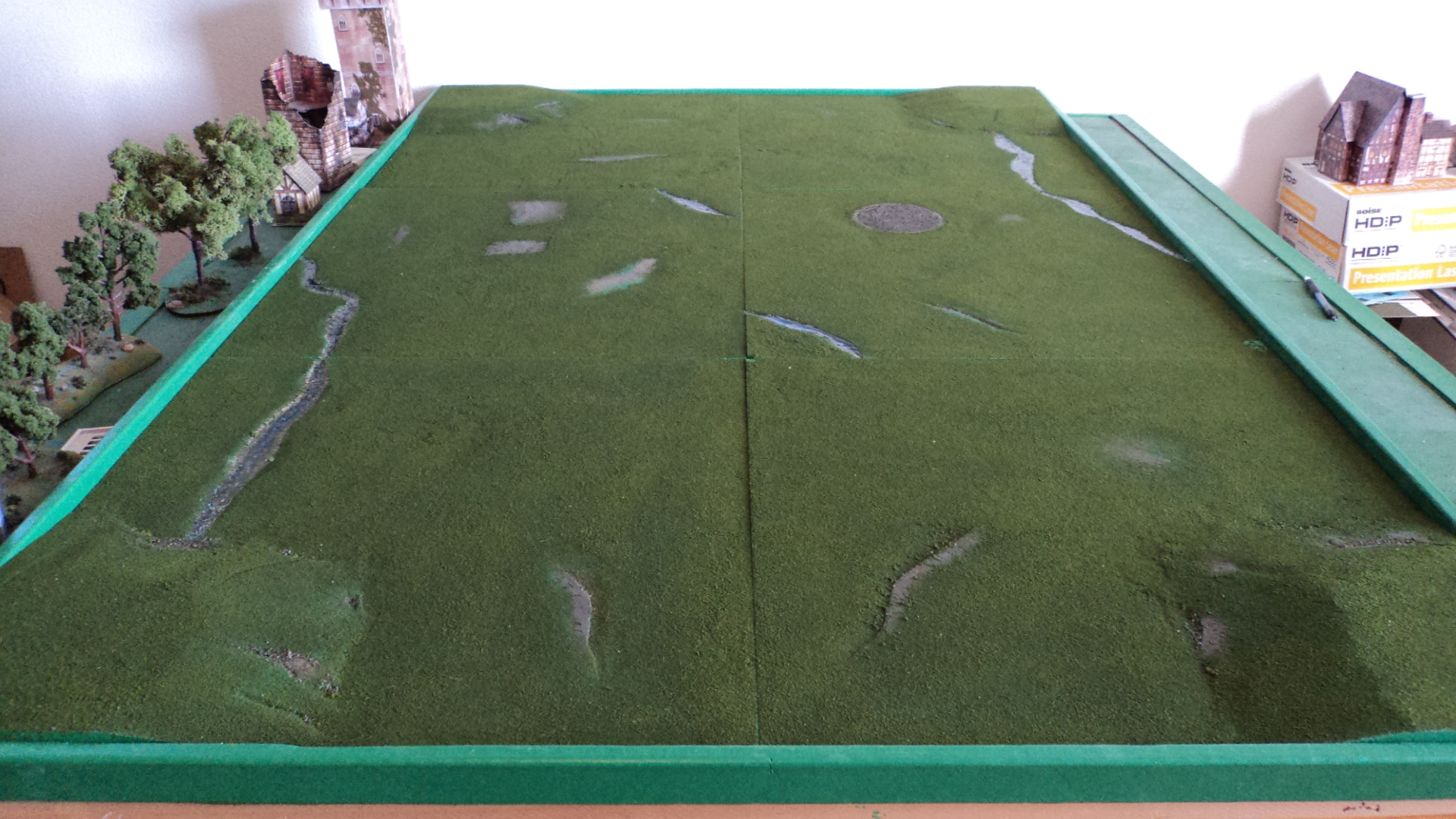 Edit: Here is my board. Each piece is 2'x2', so you can layout in a variety of ways, just like the GW version. Also, I pic of my centerpiece hand made castle (for the Brets, of course!!)