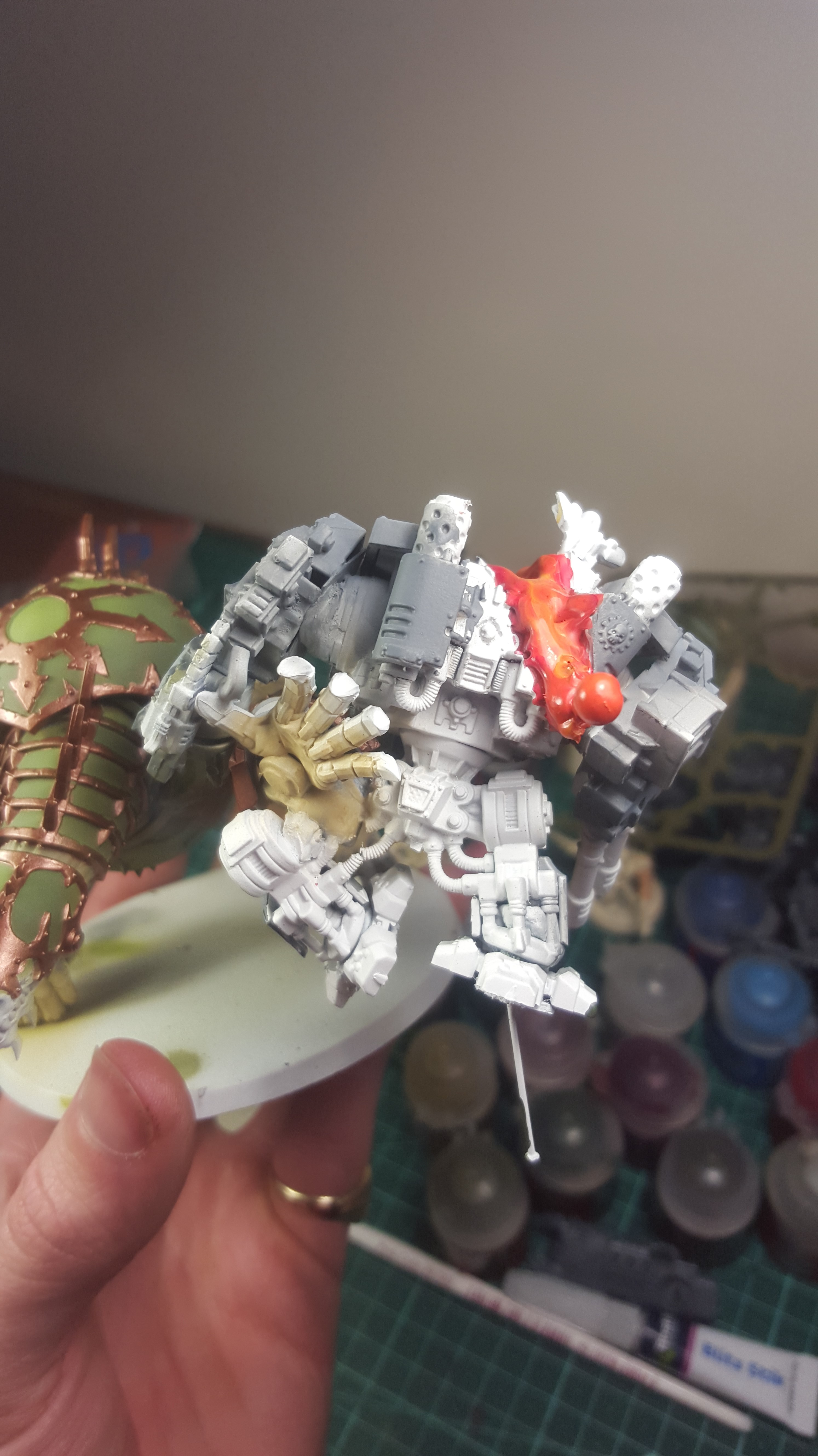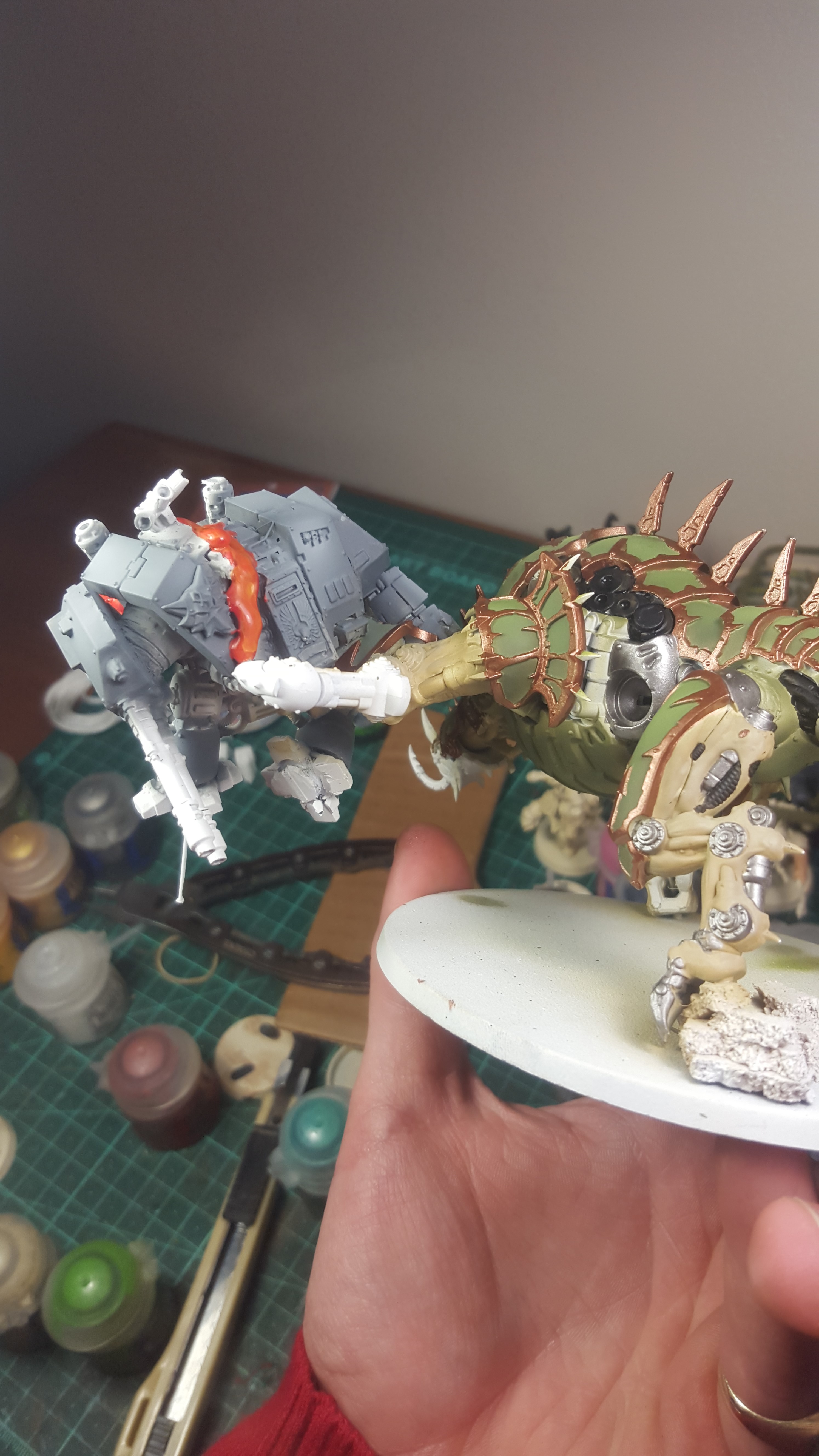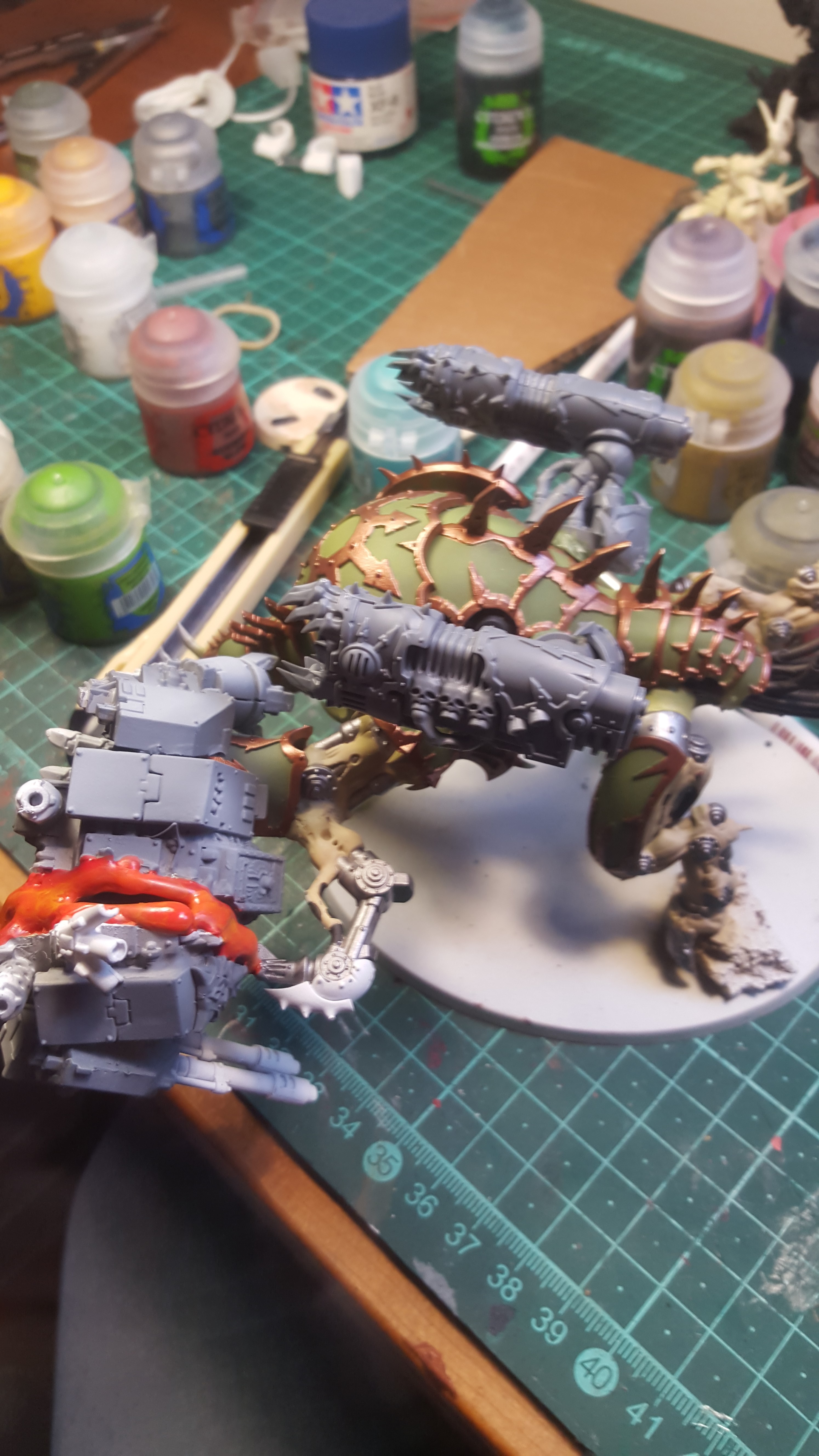 Hi guys I was just wondering how people felt about using a kit and destroying it to make a scenic base or making a model more dynamic, I built a Maulerfiend tearing a SW dread in half, most people think it looks cool but say I wasted so much money on using a kit to just destroy it. Just looking to get a feeling on the general consensus of the population on using perfectly good models and cutting them up/breaking them to make another look a little better. Have a goodie Ub edit: added a couple pics of my dude, its still a painting WIP but its coming along. not sure how to do the molten steel better than that.