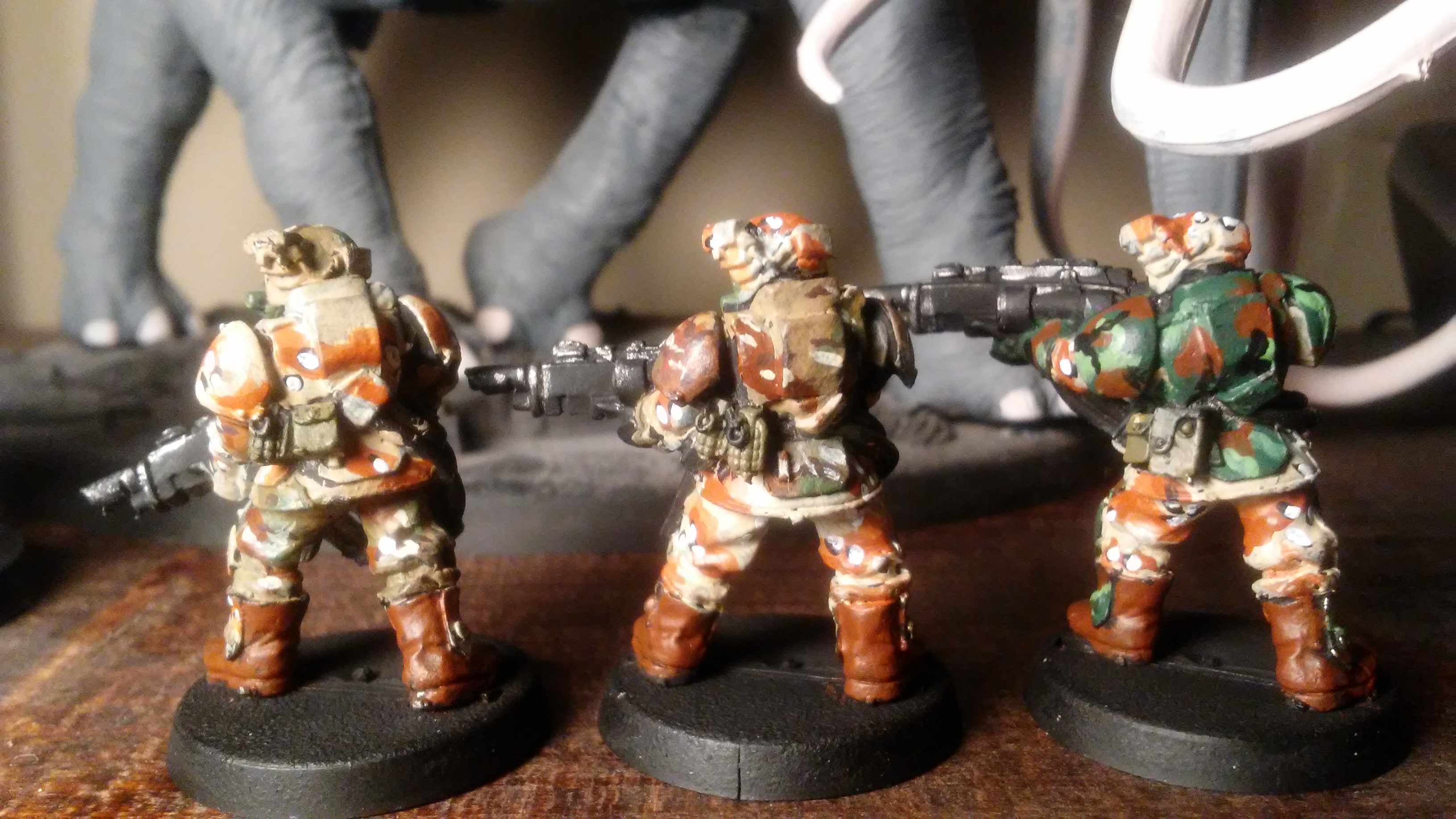 These are my first 40k minis. They each are different combinations of three camo patterns. Please tell me what you think.