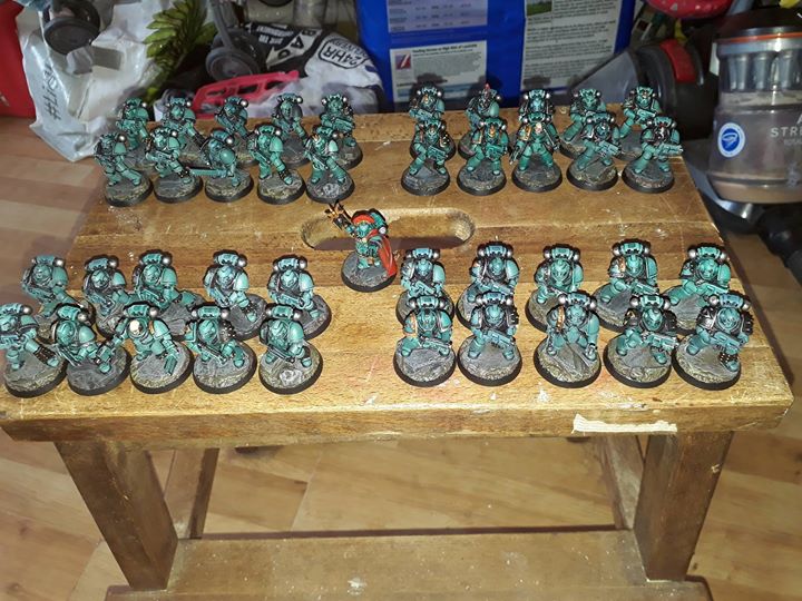 I have 40 well painted sons of horus space marines. They all have FW shoulder pads and some have FW heads and torso`s. There is also a chaplain. All of these are on resin bases.
