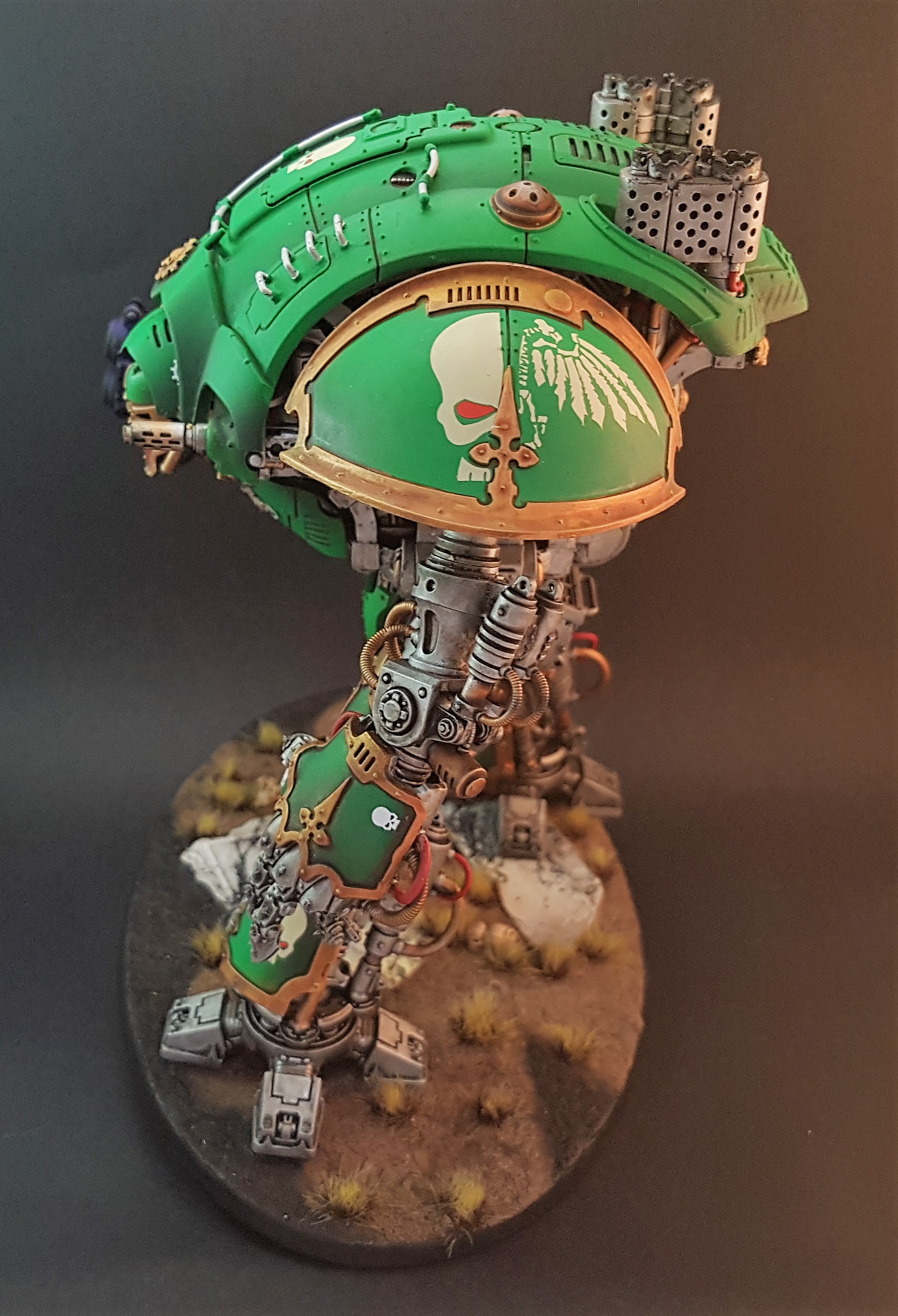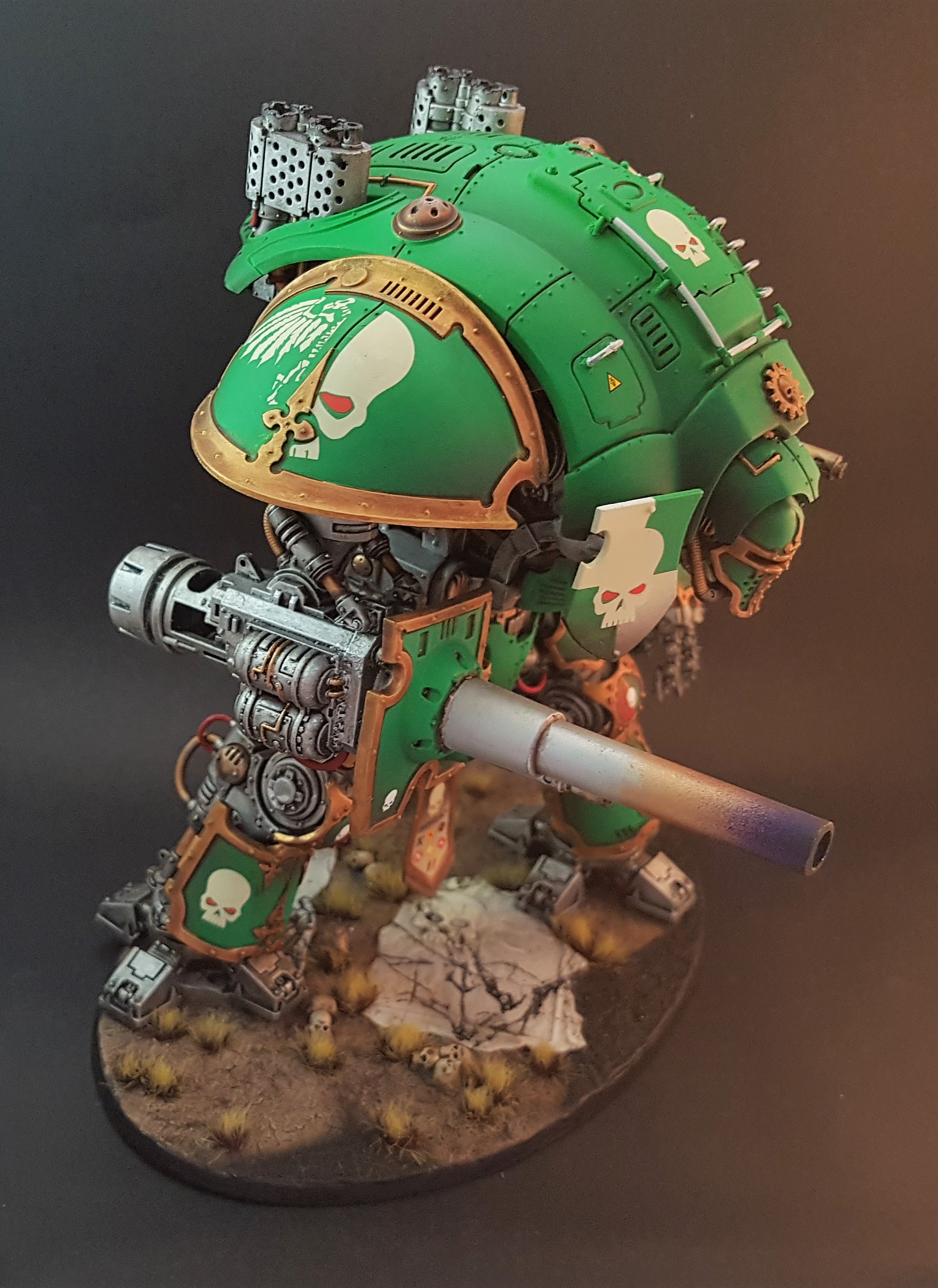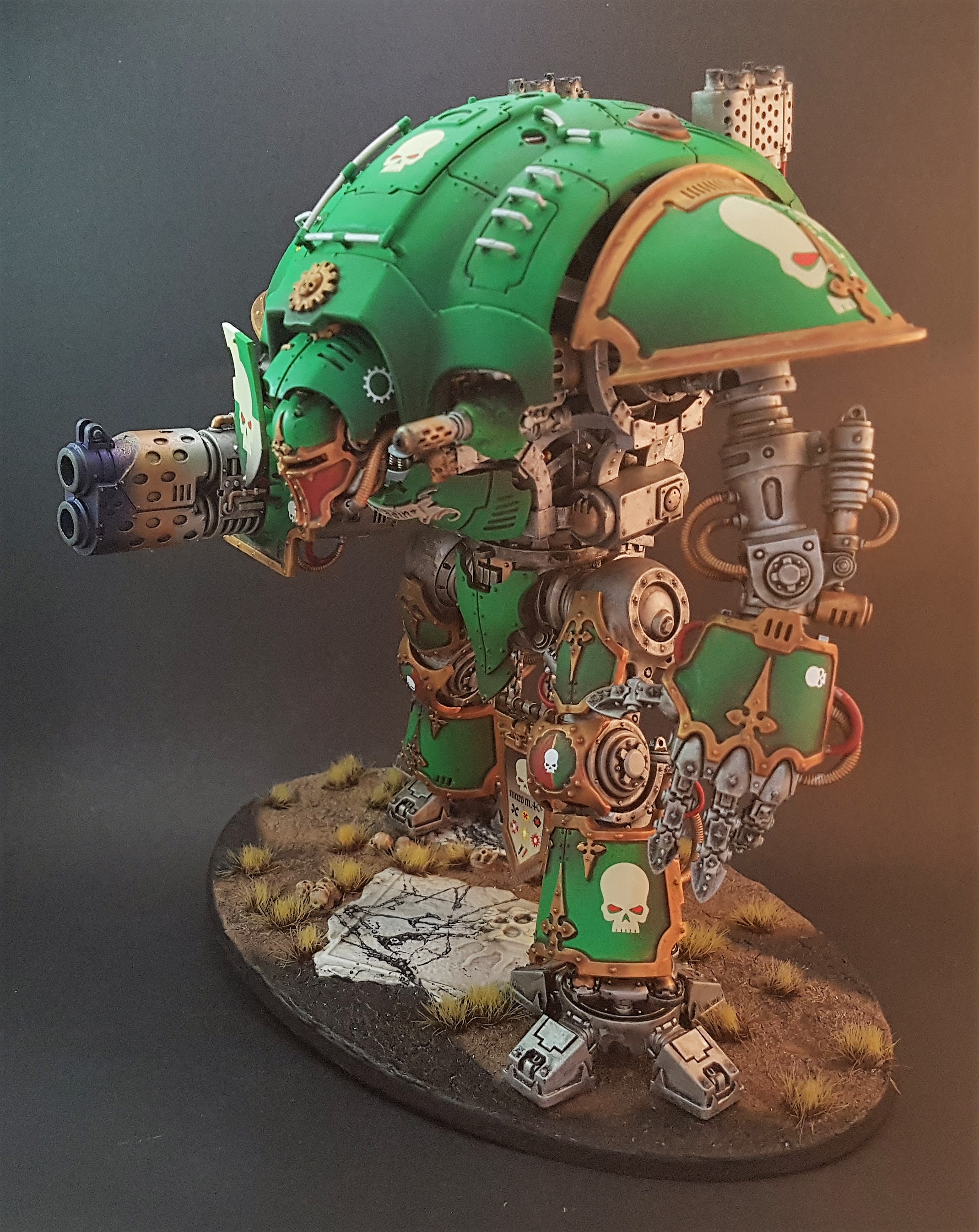 Nicely done. The only thing I'd comment on is the paintwork and feet are too neat, given the weapons have obviously been used. No one seeing this beast on the other side of the field would let it get away scratch free, and if it had just been re-painted they would likely have cleaned the barrels of the weapons.