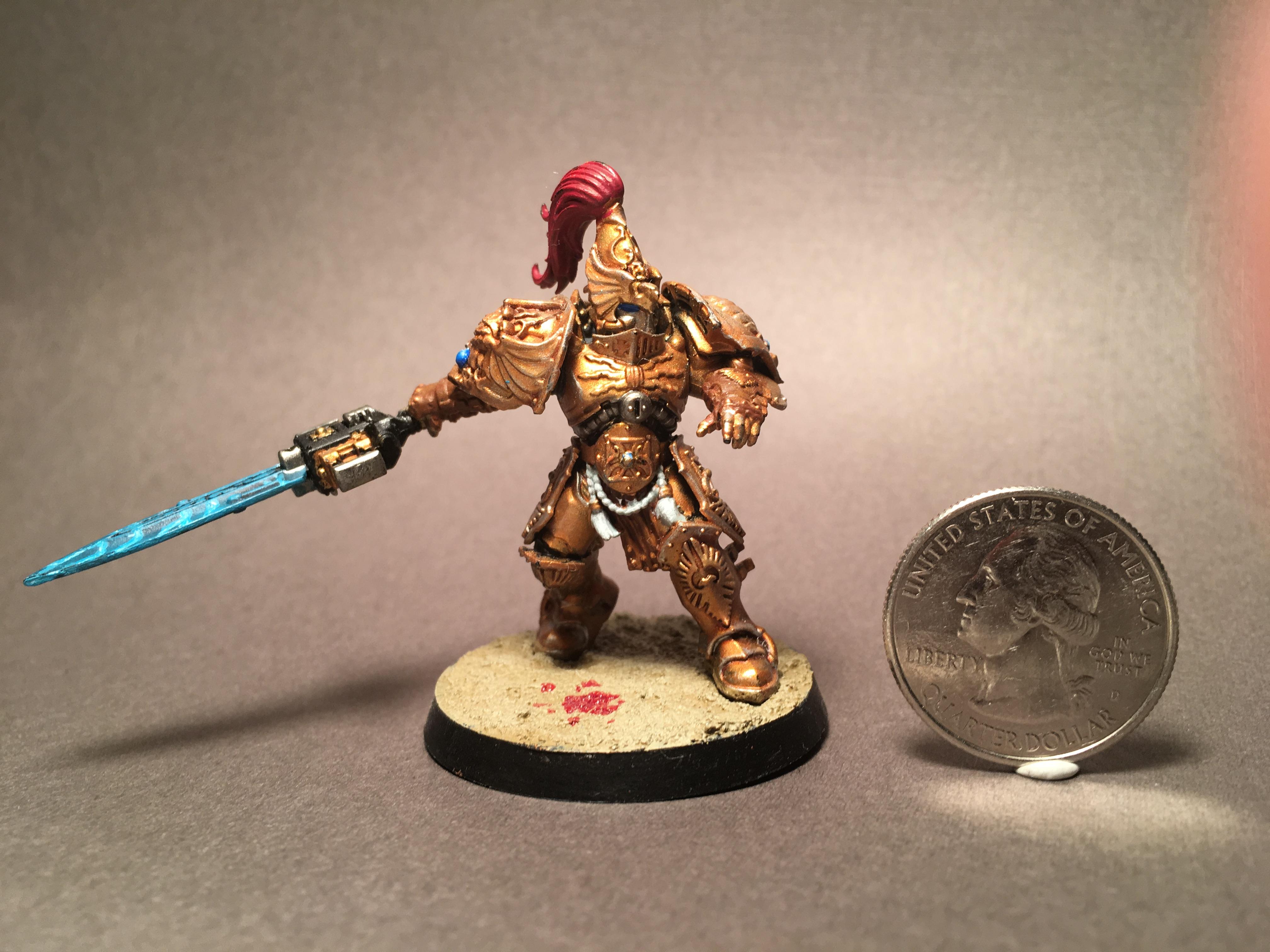 There's a few areas on the model that need a quick touch up of gold - red spill-over from the plume and some blue dots on his right pauldron. Otherwise, from that photo, he looks solid.