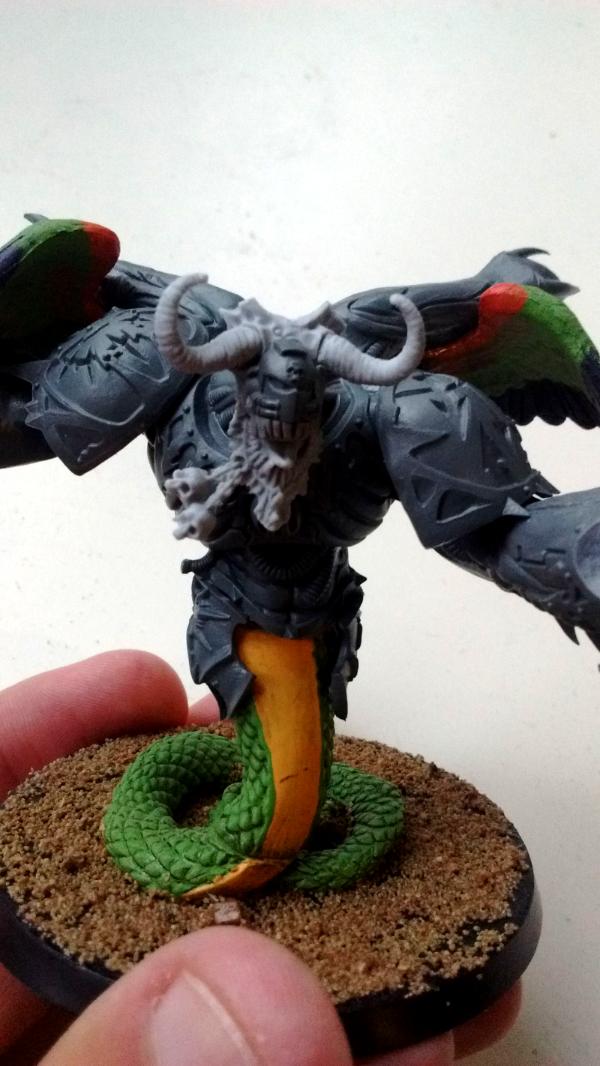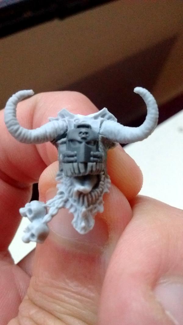 I've found myself in a bit of a bind. I'm working on my own Deamon Prince for my Heretic Astartes and I have decided that even he has to obey the rules of my army: No bare faces. Now I've seen quite a few great conversions, with headswaps from a Defiler or using the deamon prince kit's legguards as a facemask. But that got me thinking (and as those that know me can attest, woe betide anyone around when these cogs start turning): Most of my marines are clad in Mark IV Maximus armour. So too should the Prince (since he's an ascended Lord).