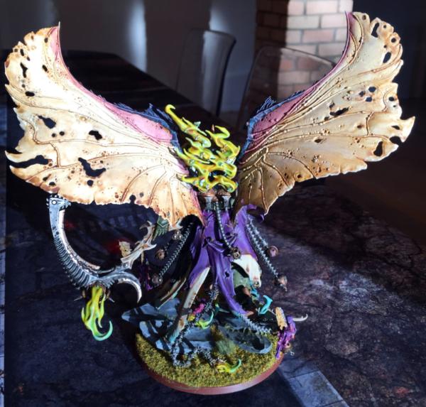 The very tops of the wings were based in Incubi Darkness, edged in Genestealer Purple and shaded with Druchii Violet.