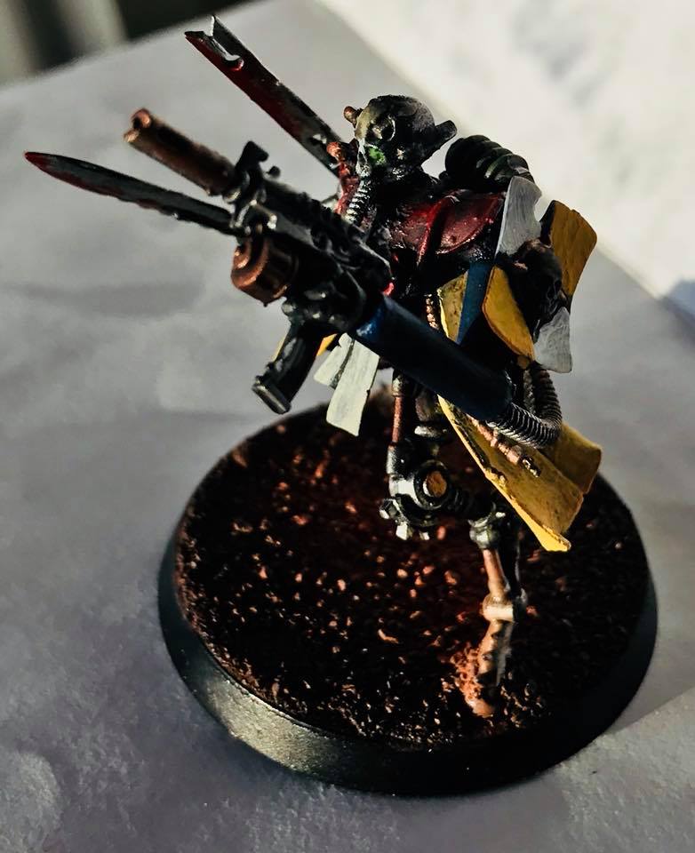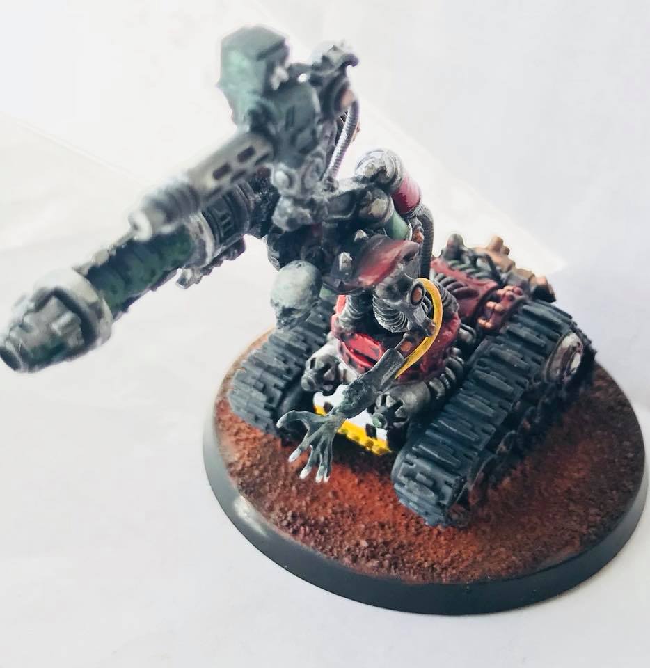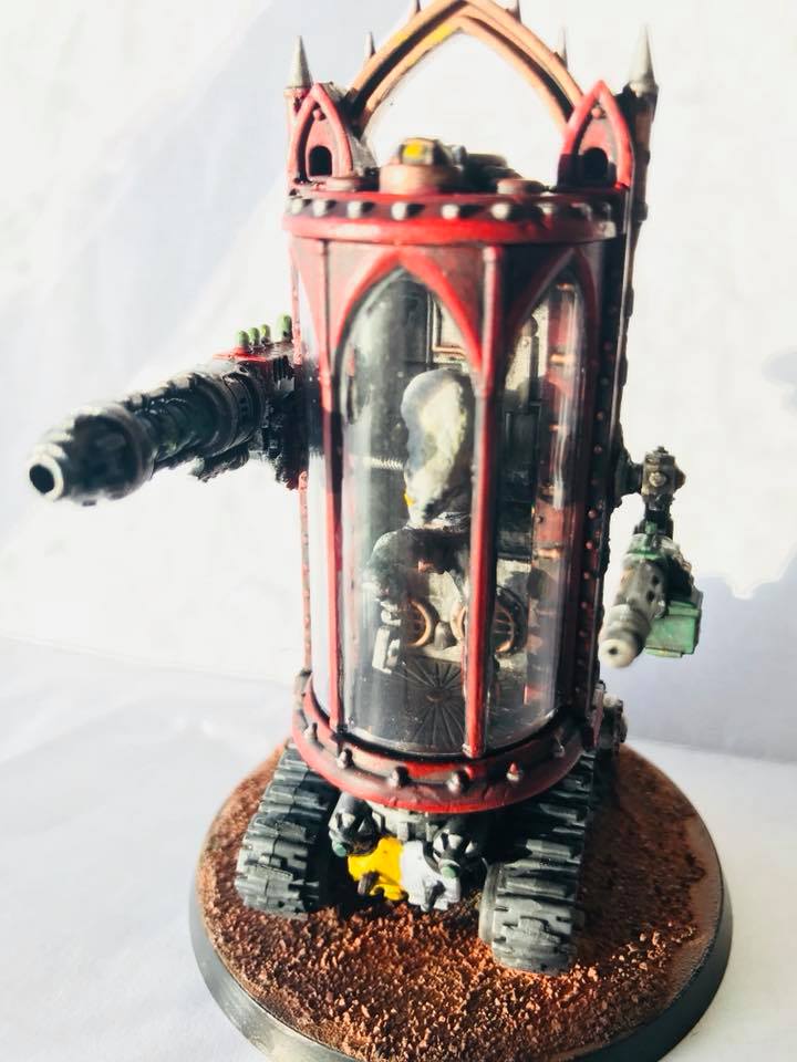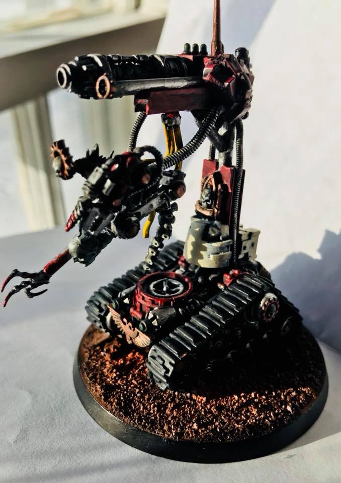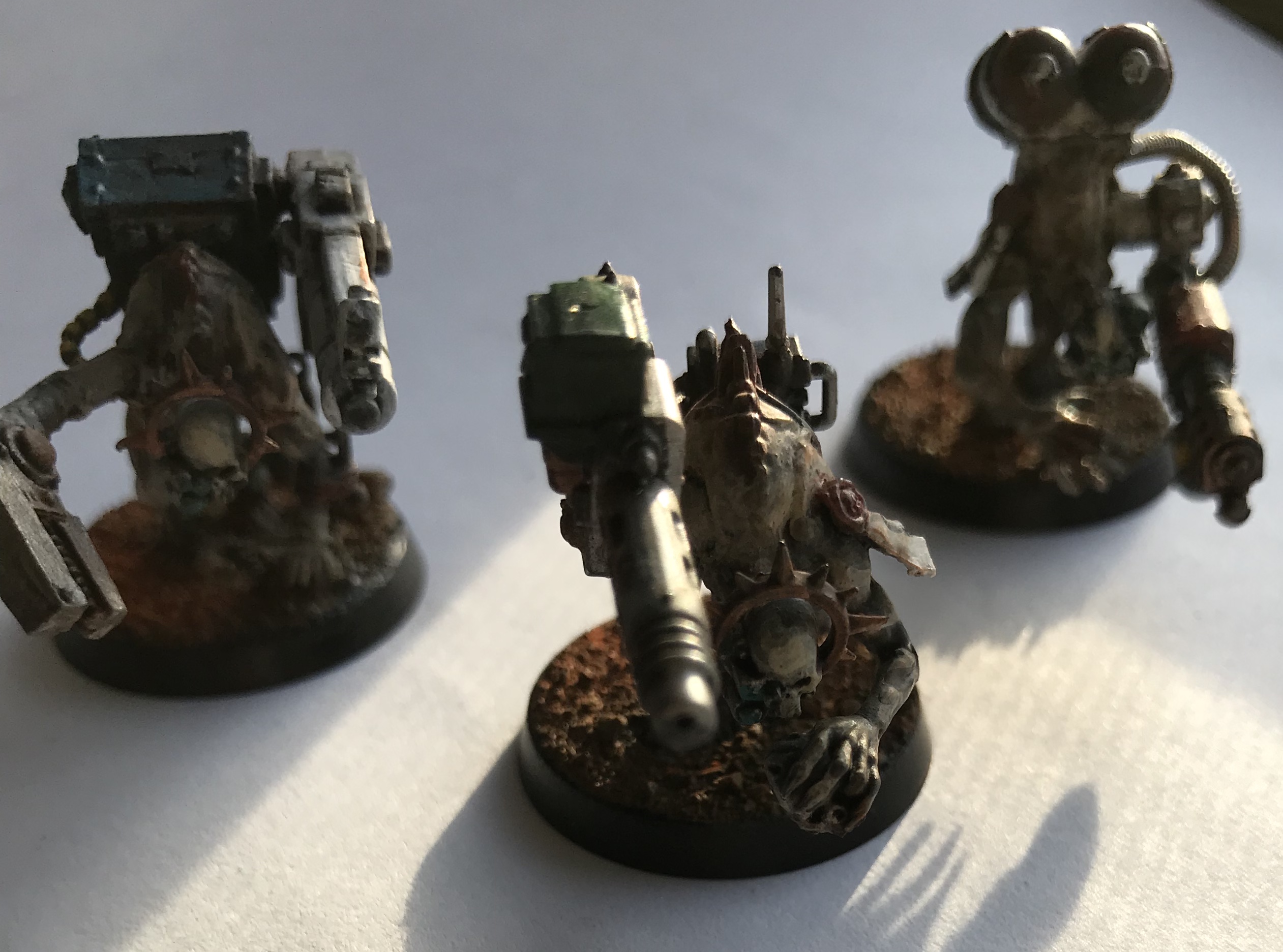 Some dark mechanicum servitors created in the factorums of hive city Clexis, using their unwilling mutant slaves they create these dark monstrosity’s to keep the city under their compliance