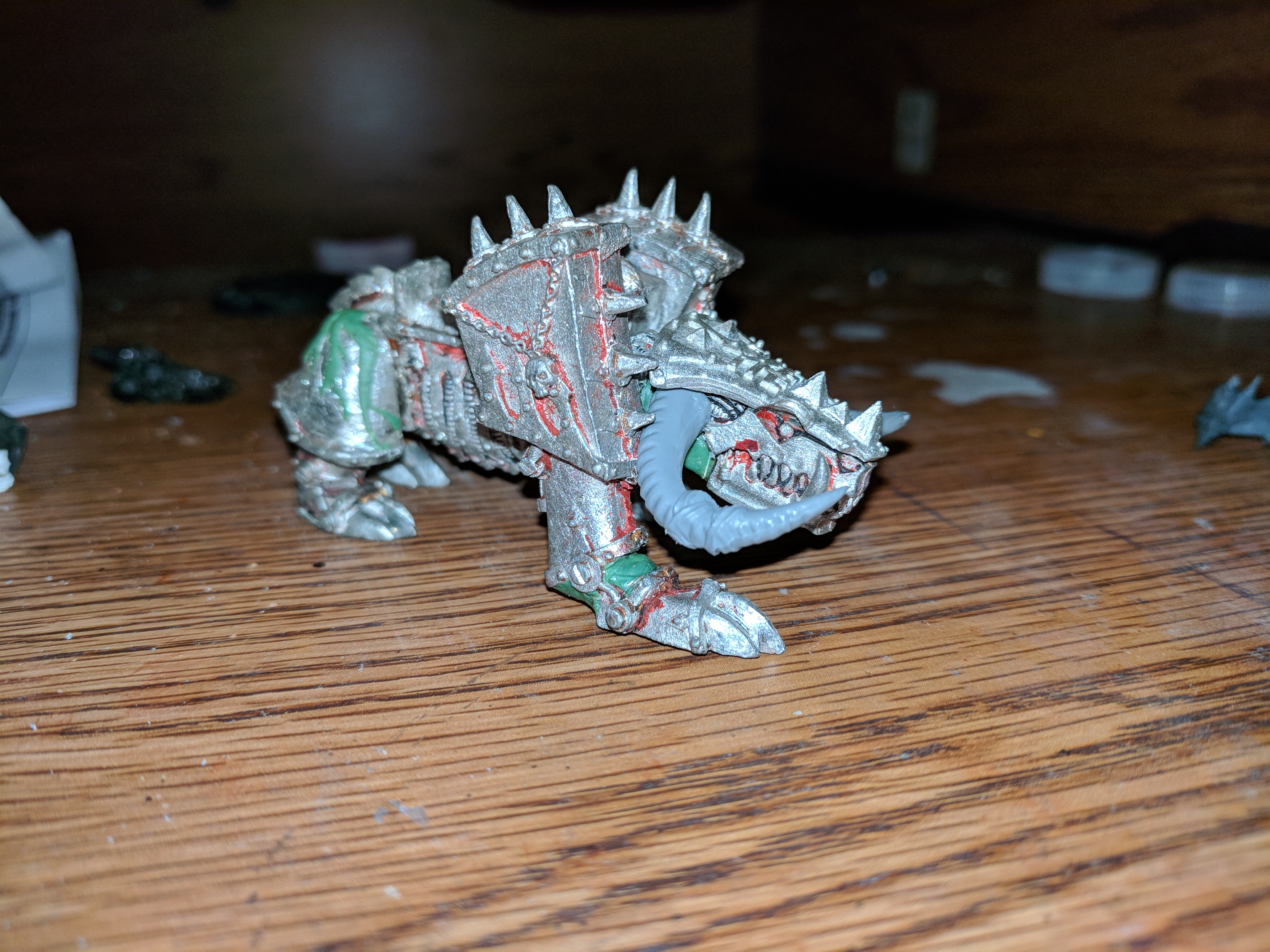 I'm gonna use a dreadnaught base. I pooled blood in the crevasses for an extra Khorney look.