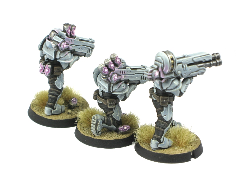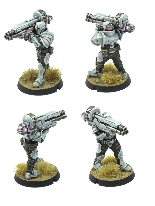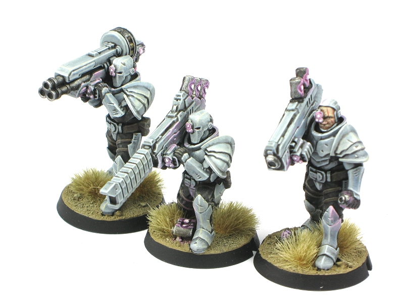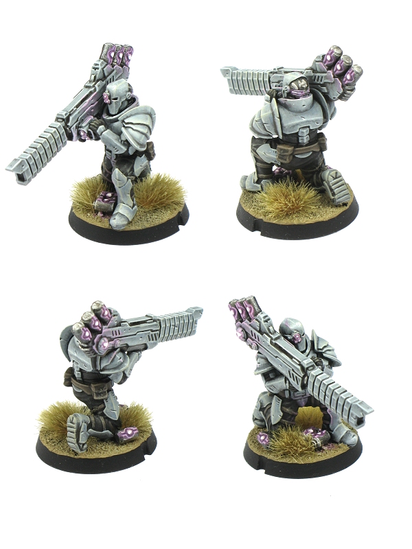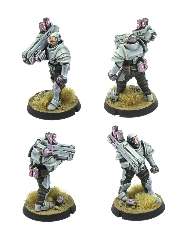 Models have a very Rogue Trader feel to them with the over-sized shoulder-mounted weapons. Crouching guy looks like he means business.