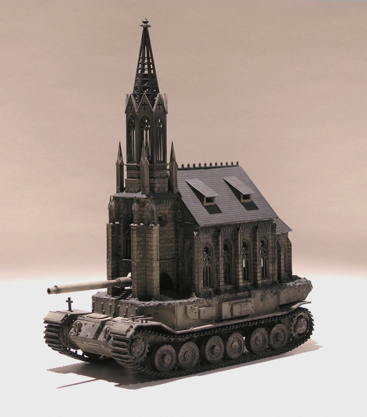 I recall seeing people put the garden of morr buildings on tanks but cant find any images.  and from what i can see a lot of scale churchs are going to be mdf or resin. you could probably use the morr buildings as toppers and build out the primary building out of plasticard and pegasus kits.