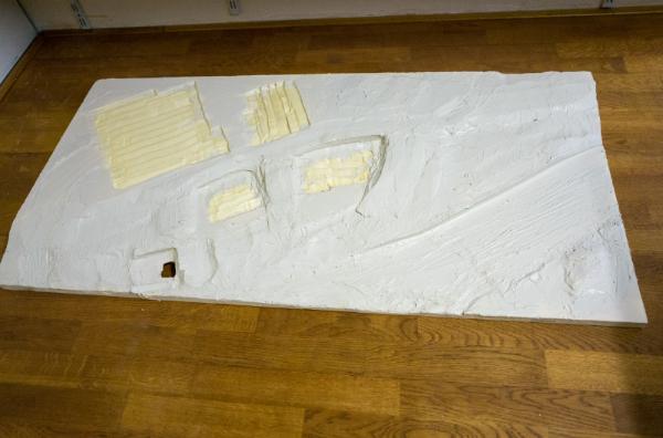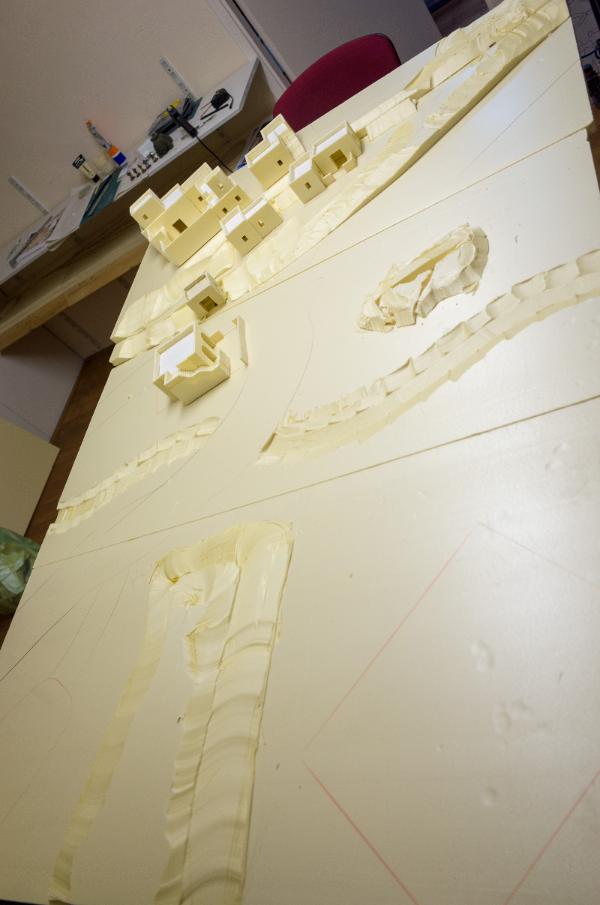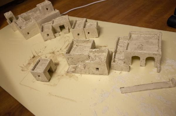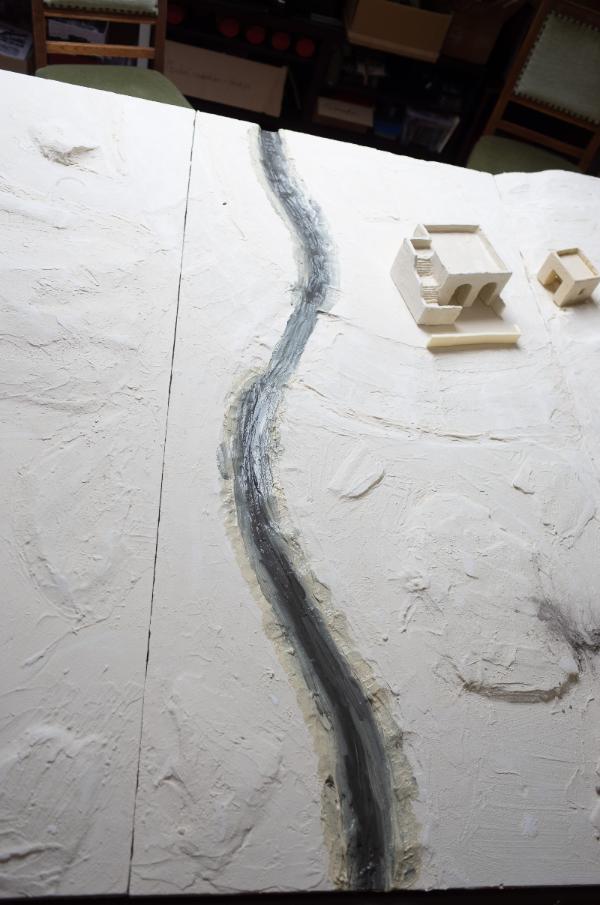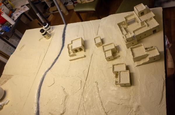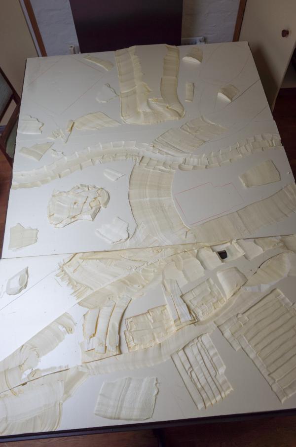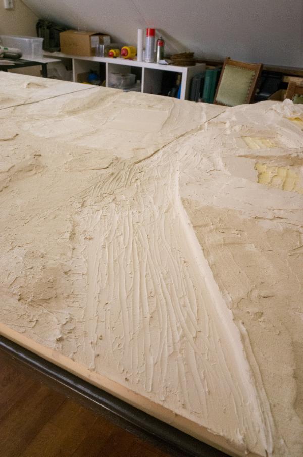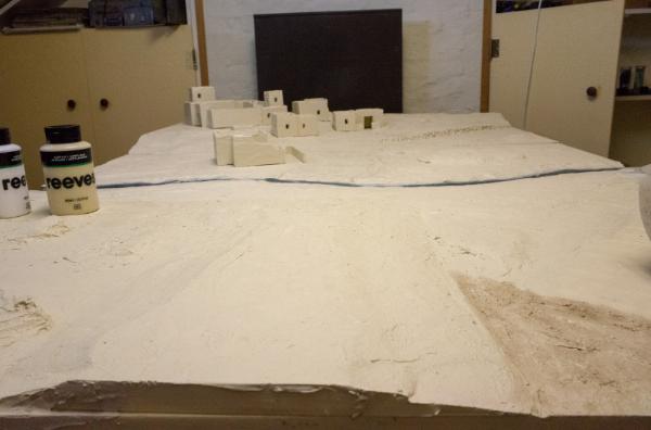 Obviously a slow-going project, but I got some more paint in and did the rest of the goop. Also started doing another goop-layer to get some texture in. I only half know what I'm doing, not sure at this point where I'll apply additional texturing with sand and stuff and where I'll just leave the filler texture and go from there. Some work needs to be done on the road bits still, and I need to goop up the buildings.