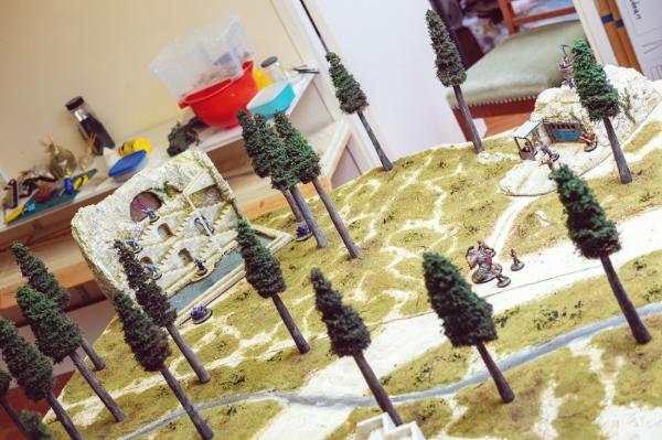 So I finally feel I'm getting somewhere now. Did some grass and other crud, and part of the table is now starting to look like the final product.