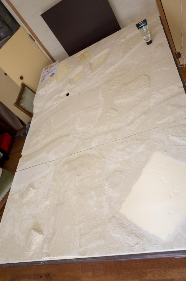 which is a mixture of wall filler, wood glue and paint. Of course I ran out of paint, to be continued...