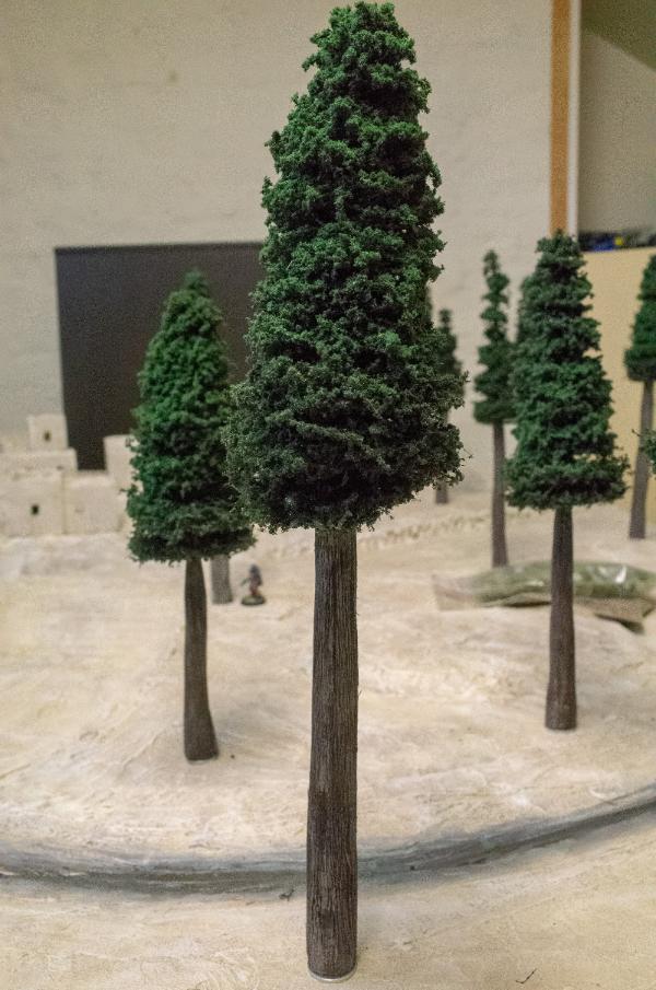 On the plus side they're fairly easy to make in bulk and convenient for gaming: nice thick trunk, plenty of clearance under the needles and doesn't obscure view too much.