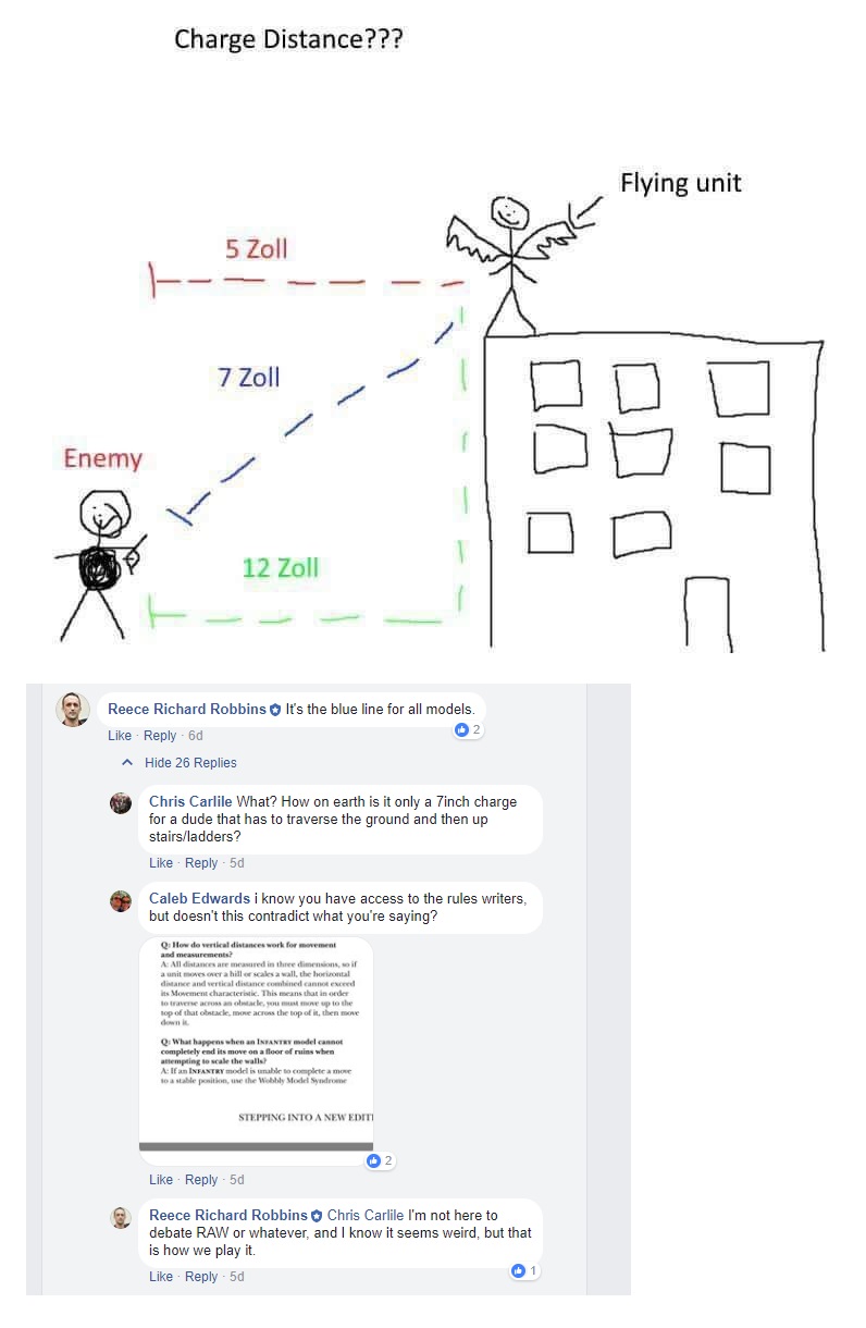 Wonder if commentators got confused. Was Reece answering for flying unit doing charge or the enemy doing the charge? If flying unit then that's one thing and makes sense it's blue but reverse would it be green again? Which wouldn't conflict with Reece's blue line since it would be logical for flying unit.