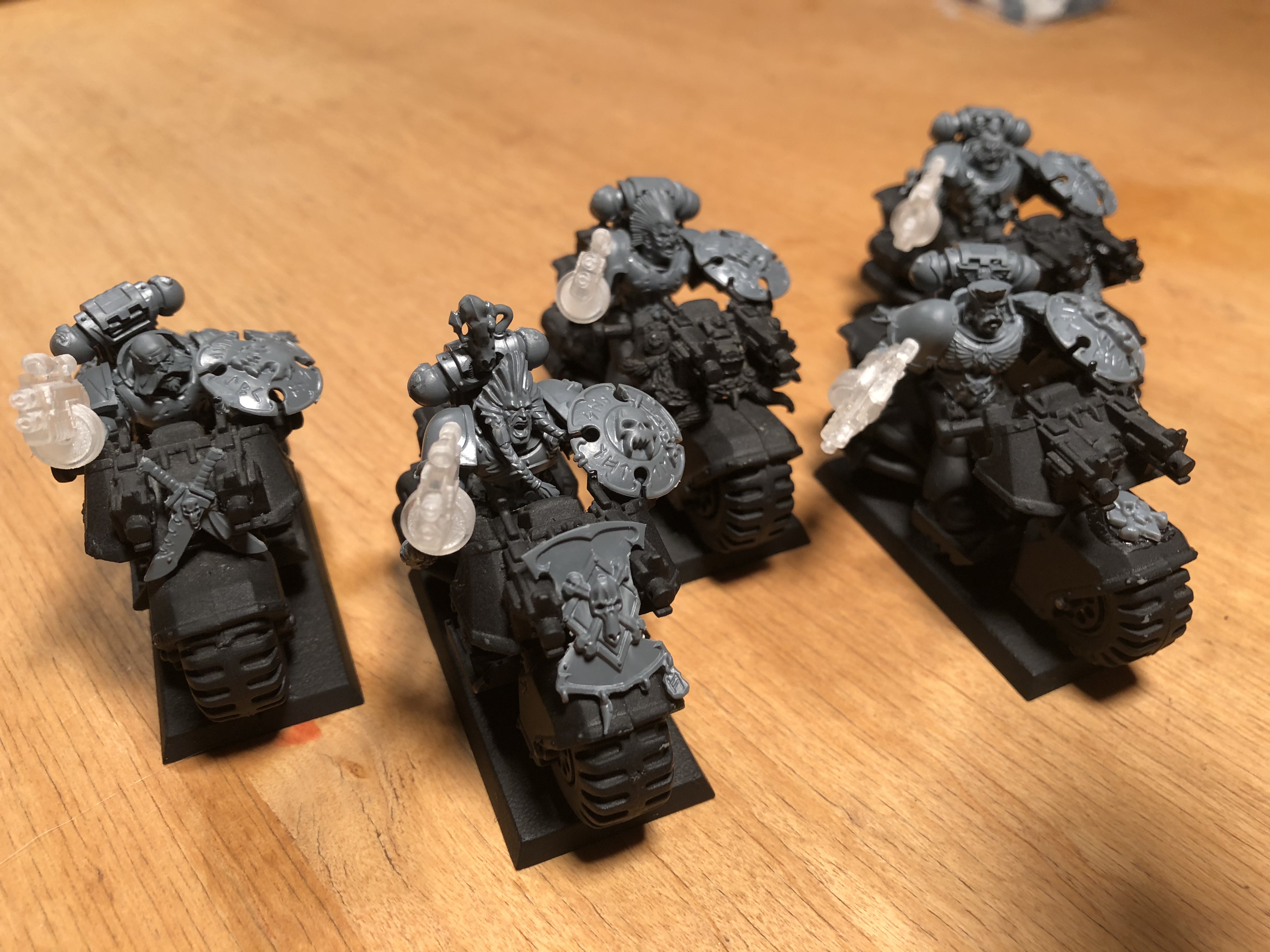 Oh also - those are looking really sharp... I am contemplating putting a rune and wolf priest on a bike, but the five man dakka squad is super tempting.
