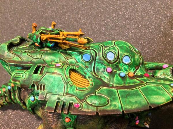I was trying to keep it recognizable as a wave serpent, so I kept the engines and stuff. The 'Smarties' are my attempt at jems on it, I thought air gun bbs would be small enough, but they are kinda big.