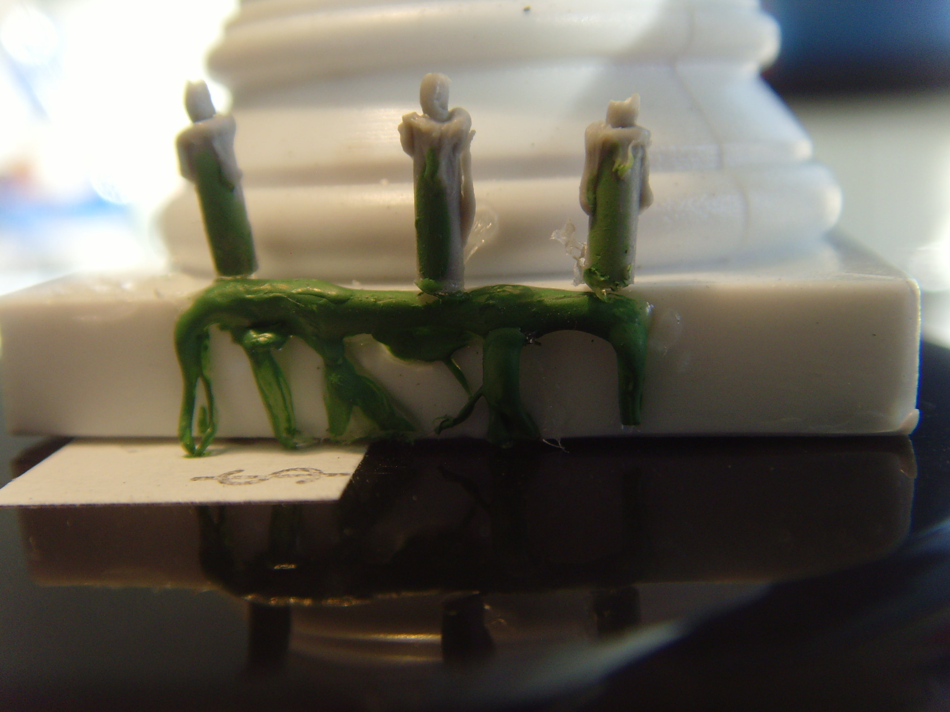 hey mike  , i just made some candles , out of green stuff and small nails , i made the base of the candle fatter than the top and just used green stuff , with a sculpting tool , to pick at it and make a drippy effect