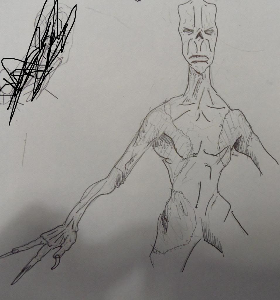 A quick pic for ya, i think alot of the horror of the image i have is lost without colour. Think horrible pale batterie farmed chicken skin, or a burns victim with veins and mottling.