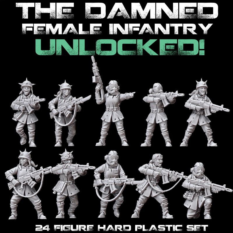 Thanks for all the shares, posts, likes, and general excitement you created out in the world! The Damned Female Infantry are now Unlocked! Also we just hit $180K so everyone gets another FREE sprue too!