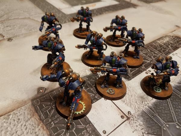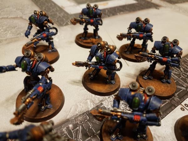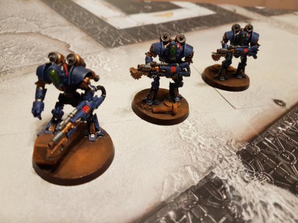 They're really cool ! I'm glad blue fits them well, the generic FW paint scheme is all rusty and gritty, and if they came to be usable in 40k I'd grab a few and paint them blue like the rest of my army.