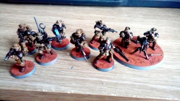The Aragung 9th and 10th infantry, and 11th Armoured regiments were raised in order to assist with holding Cadia. However, the regiments never reached Cadia, instead becoming engaged in multiple warzones along the way. In the course of these battles, the Aragung 10th infantry was almost completely wiped out, and the 9th suffered considerable casualties, leading to the merging of the two regiments. However, in the chaos and confusion upon hearing of the news of the fall of Cadia, and the spreading of the cicatrix maledictum, the aragung regiment found themselves on an unknown world, with no orders. Gathering the remnants of the force, the officers began a long campaign across the stars to return to their homeworld, itself now threatened by the spread of chaos. Assisting desperate imperial commanders, rogue traders and mechanicus forces, the Aragung are able to receive transport for their services, each battle bringing them a small step closer to their homeworld.