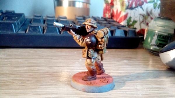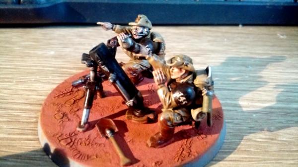 These guys also represent my first attempt ever as using weathering powders and painting stubble! So far, due to waiting for more 3rd party heads to arrive, I have (semi) completed 7 guardsman and a mortar team. These guys are all very shiny, as I have lost my matt varnish spray, and until I find it they will remain glossy, and I have not decorated the bases at the stage. They are mostly done though!