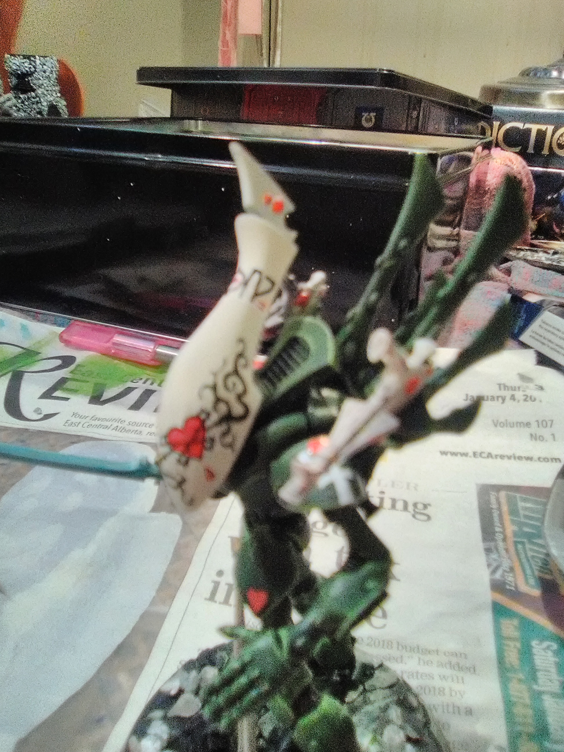 Tried to show the pebbling, but as per usual the photo comes out looking like gak. I swear it wasn't that bad on my phone display. Automatically Appended Next Post: You know what fellas I'm actually pretty peeved with that game store employee. That primer was working fine thinned down with water, I just noticed it would get a funny sheen in the pallette once mixed. Models turned out fine, nice even coats, no adverse effects from being thinned with water that I could see, just the odd effect in the pallette. None of my previous paint jobs had any pebbling because I was thinning my paints. I don't know why I listened to that guy, I knew as I was priming the WS that I was doing it wrong and the primer was too thick but I figured he knew something I didn't. Maybe airbrush primer is different? Despite my own experience with the product I used it like a moron!