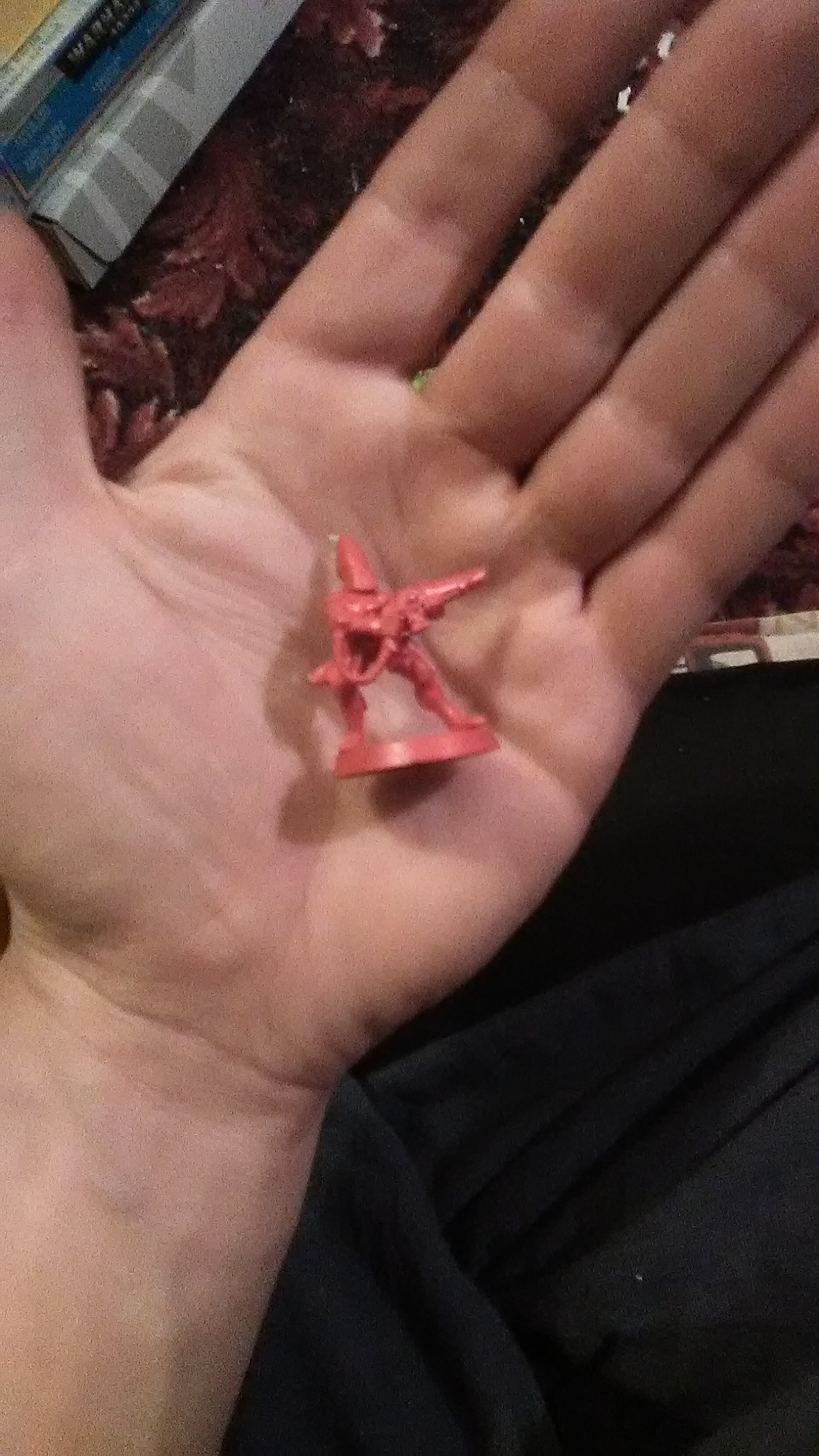 You'll notice the poor guy is bereft a gun. Since you only get so many Shuricans per box I chose to just wait til I got my hands on another cannon. I might get lucky here in a bit on a trade and have a support weapon one I can steal. Til then we shall have to pretend.