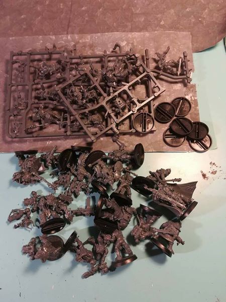 Night Goblins, 2x20 spears, 20 archers, 9 spider riders and a spider, one goblin boss, one shaman. £35