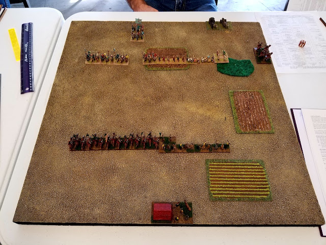 I'll be updating this thread as each AAR appears on my blog. Since DBA is one of my 6x6 Challenge games ( you can read more about that here), I decided to attend both of the DBA event at Cold Wars 2018. The first was an open event on Friday, and the second was an Early Byzantine event on Saturday. I decided, for the sake of convinience, to just take the army I had built for the Early Byzantine event on both days - the Avars, or more specifically, III/13b. This list consisted of 5 units of Cavalry (one of which was the General), 4 units of Auxilia, 2 units of Light Horse, and a unit of Psiloi. Nothing spectacular, but I thought it was a decent mix of average and relatively mobile choices. This was a trial by fire, since my previous experience with DBA had been a single solo game I had played to try and get a rudimentary understanding of the rules before the convention. Automatically Appended Next Post: My first opponent in the Open Event was Mike D, who had brought along his Warring States Chinese. As I won the roll for Attacker, Mike set up the battlefield with two plough, a road, and a gentle hill. Both our lines advanced towards each other. Unfortunately, rather ignorant of DBA's combat factors, and coming from ADLG, I didn't realize just how much the fighting favored Mike's crossbows compared to my cavalry. While I managed to kill one unit, I lost a unit in return, and my own line was disrupted. The game quickly ended as another round of shooting from Mike's crossbow was enough to kill two more units (one of which was my General) ending the game with a 4-1 victory to the Chinese.