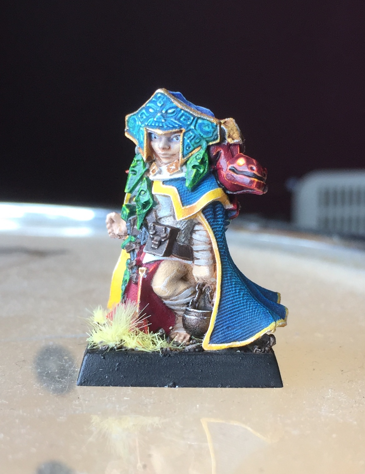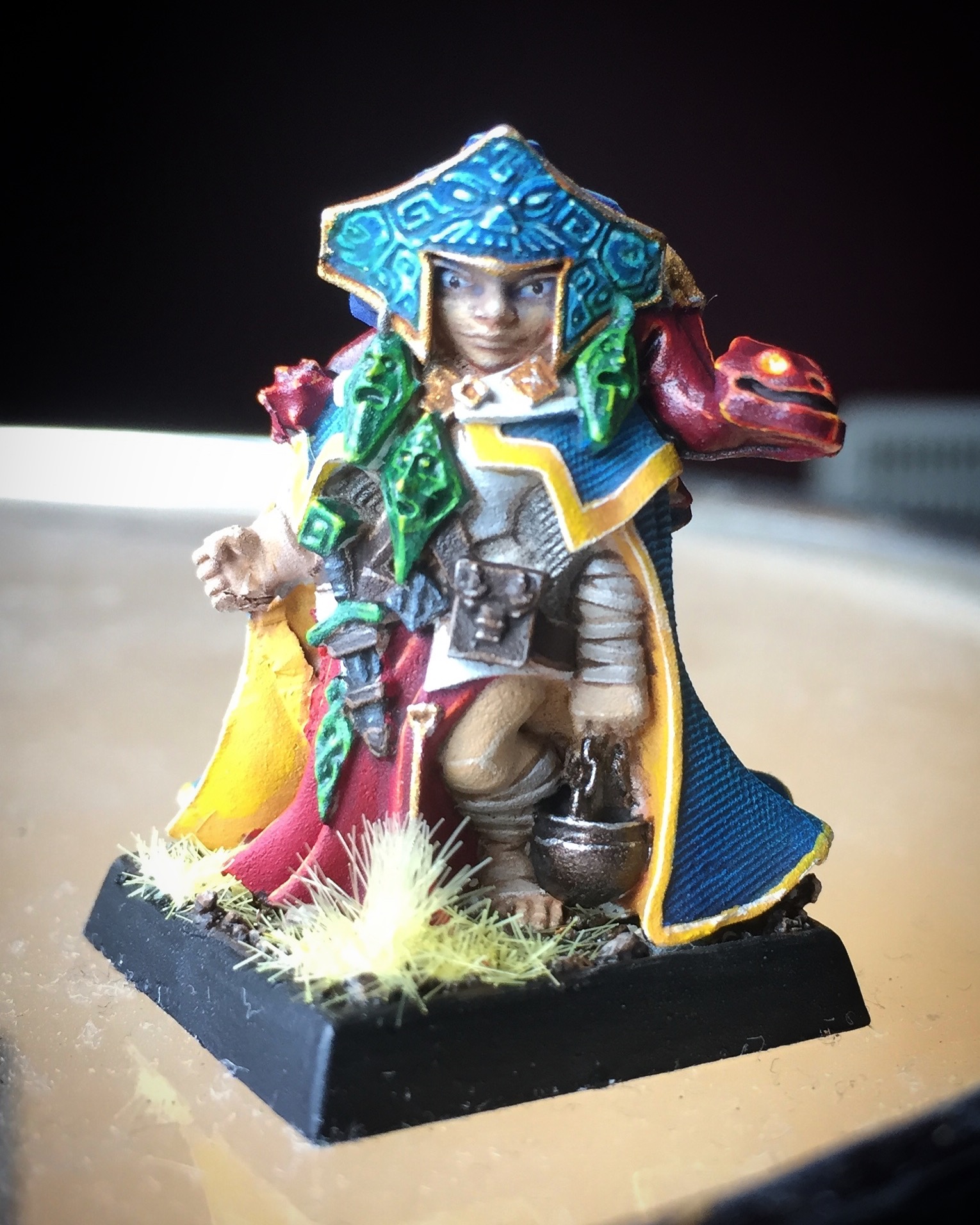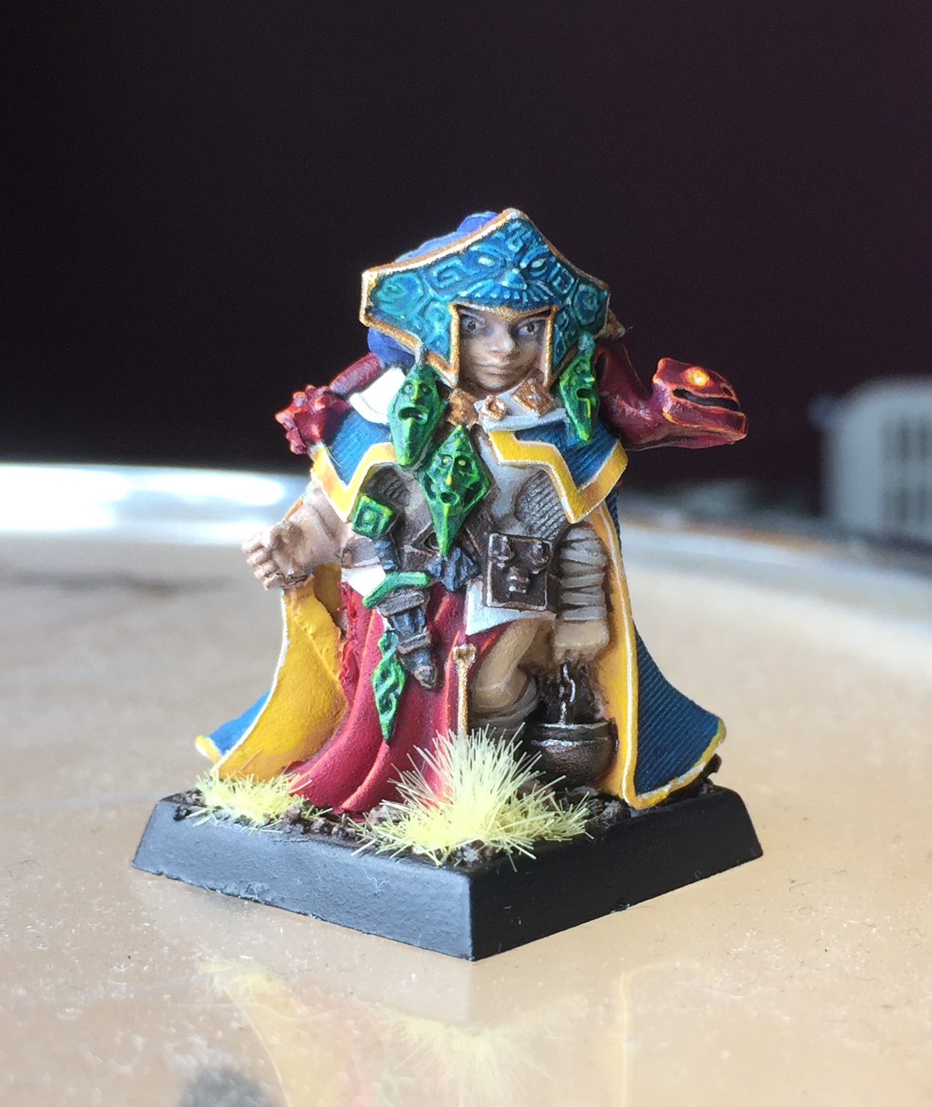 Hey guys. I normally paint ultramarines, but my girlfriend and I have gotten into D&D recently and I painted up this miniature to represent her character. Would be keen to hear you guys' thoughts! Not often I do something as different as this, was a really cool learning experience.