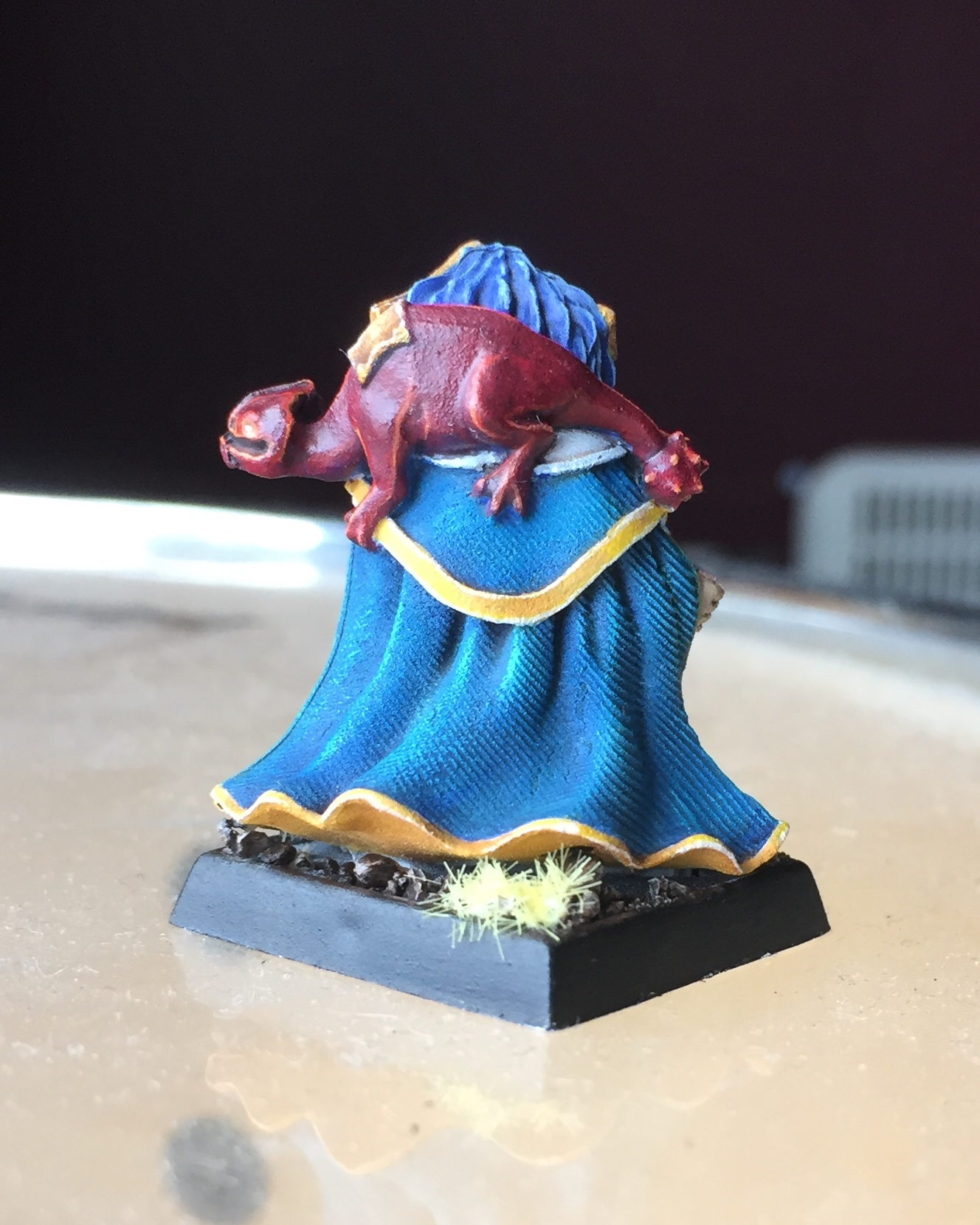 Thanks bbb, the mini is pewter. I bought it in a reaper clamshell at my FLGS. The cloak does have a strange texture though I agree. It stressed me out a bit when it came to painting it, but it turned out ok!