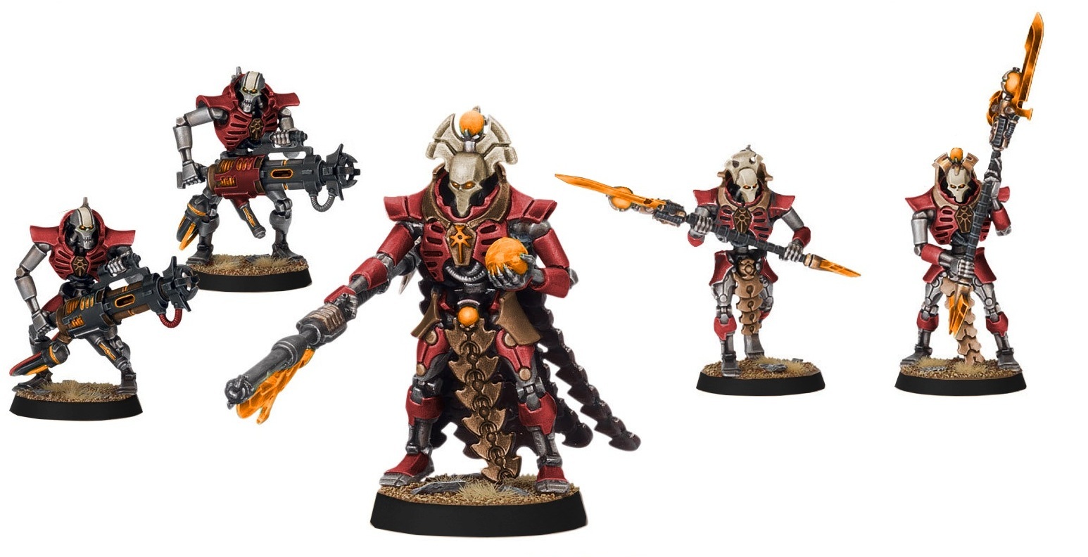 The scythes appear to have the typical paint style you see on a lot of power weapons, the upper highlight's a bright orange of one form or another. I'm not sure how dark you should start, either.