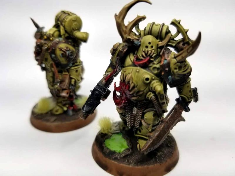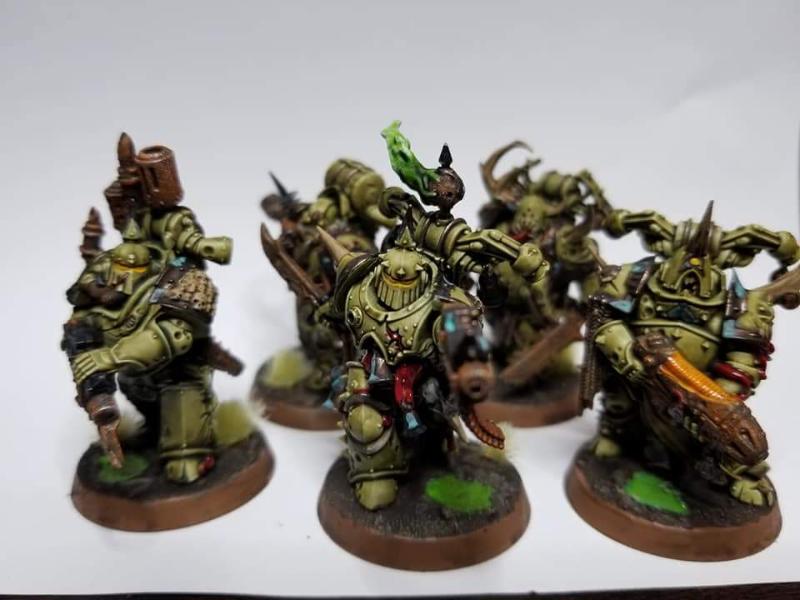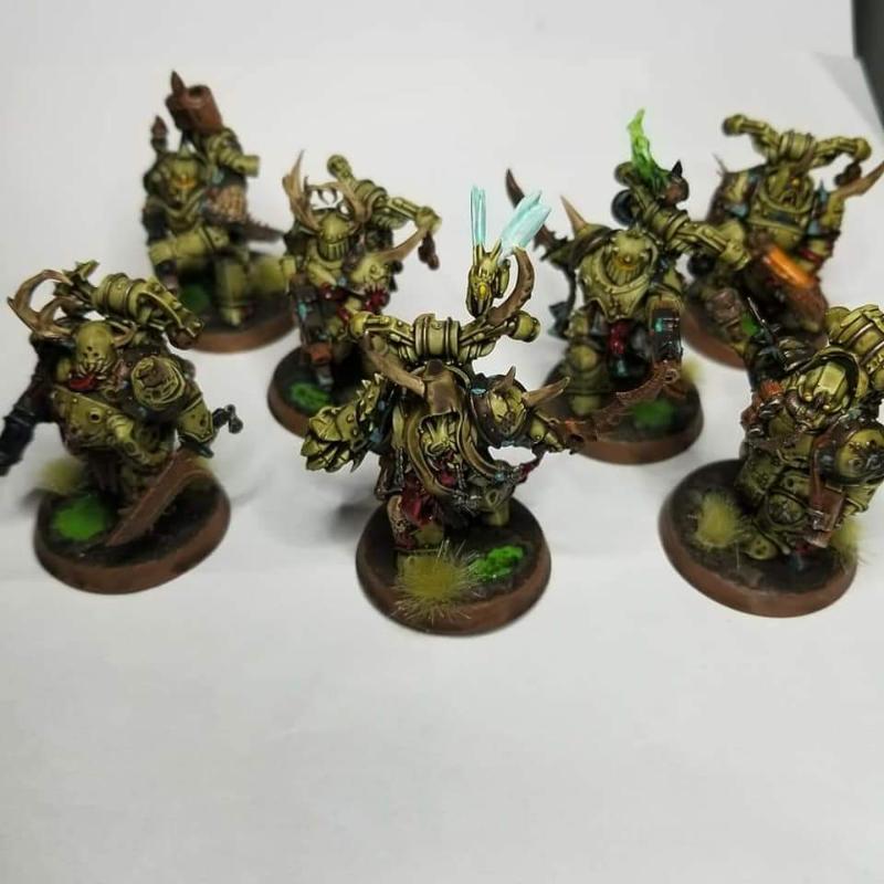 Hello Vikkturr, Your Traitor Death Guard are very well painted. They have a very uniform look. I like that You kept the paint scheme simple. The aspiring champion of the squad is nice because his hooded cowl is painted in a different color from the majority of the other Death Guard squads I have seen. That is great! Over all the paint work done is crisp and clean but they still have the Nurgle Rotten goodness going on.