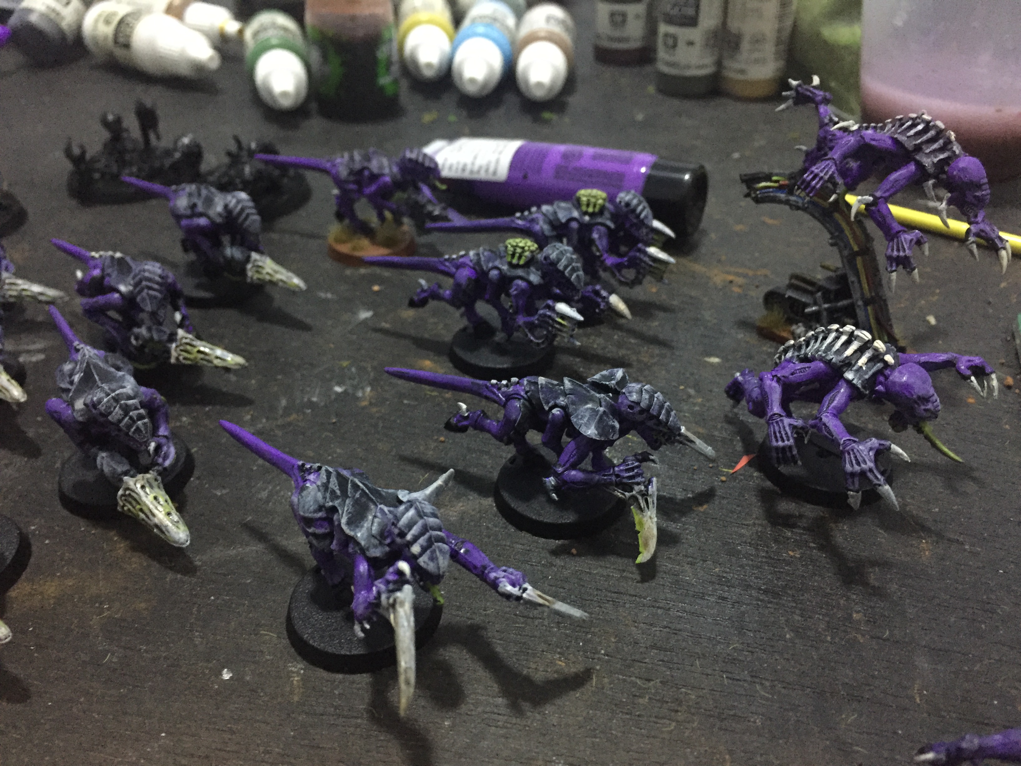 I have now moved on to a grip of GW Nids, which I will be using as Hive/Hive Cult models in Star Breach. Uniform in color and feel, like any good spacebug horde, but lots of fun weapon variations for different builds.